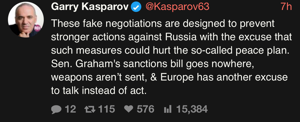 Åpenbart bedre for Ukraina med dagens ‘stalemate’, enn en ‘fredsløsning’ der Russland har fått løftet sanksjonene og Ukraina står uten sikkerhetsgarantier.