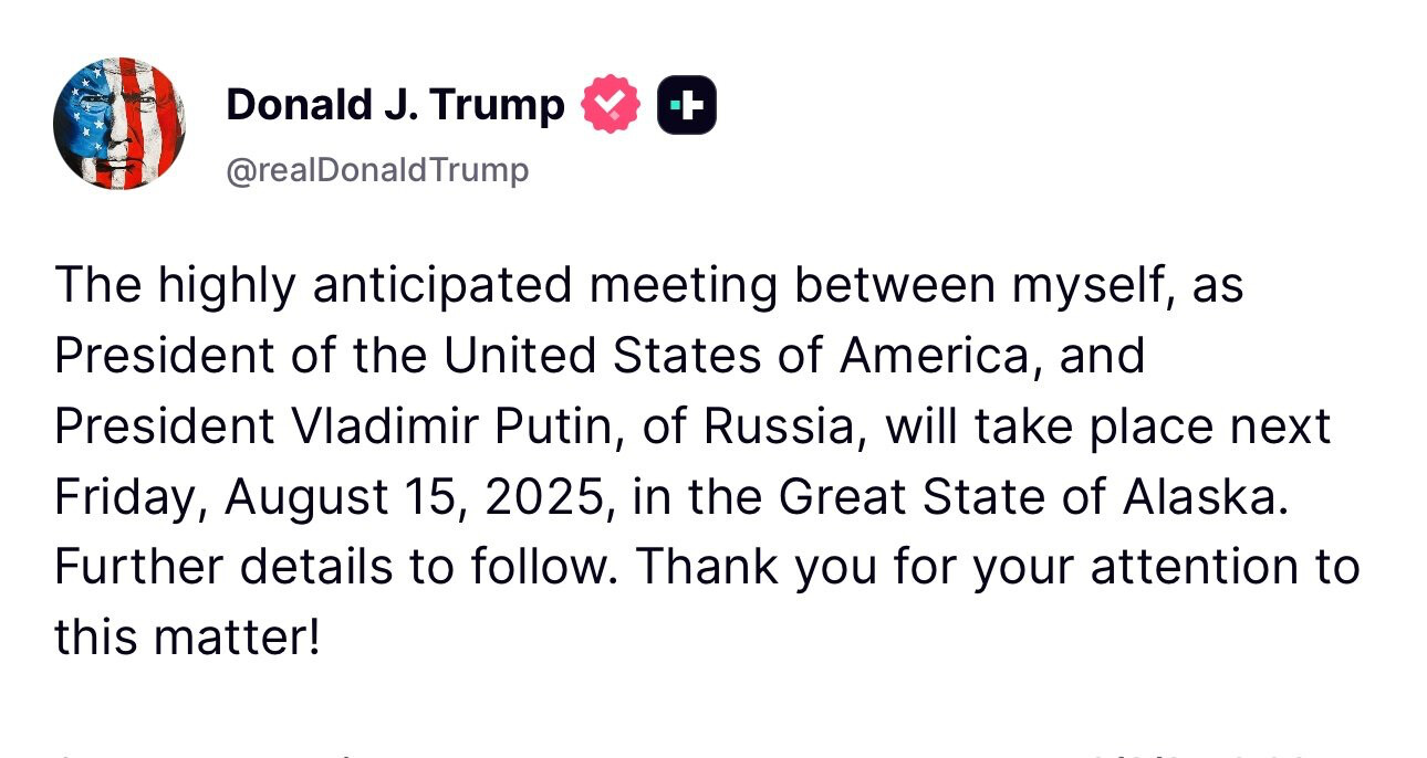 Grunnen til at ha møtet i Alaska er nok at Trump ikke vågar reise til ryzzland og Putin vill reise utenfør ryzzland så kort strekning som mulig. Om møtet blir av.