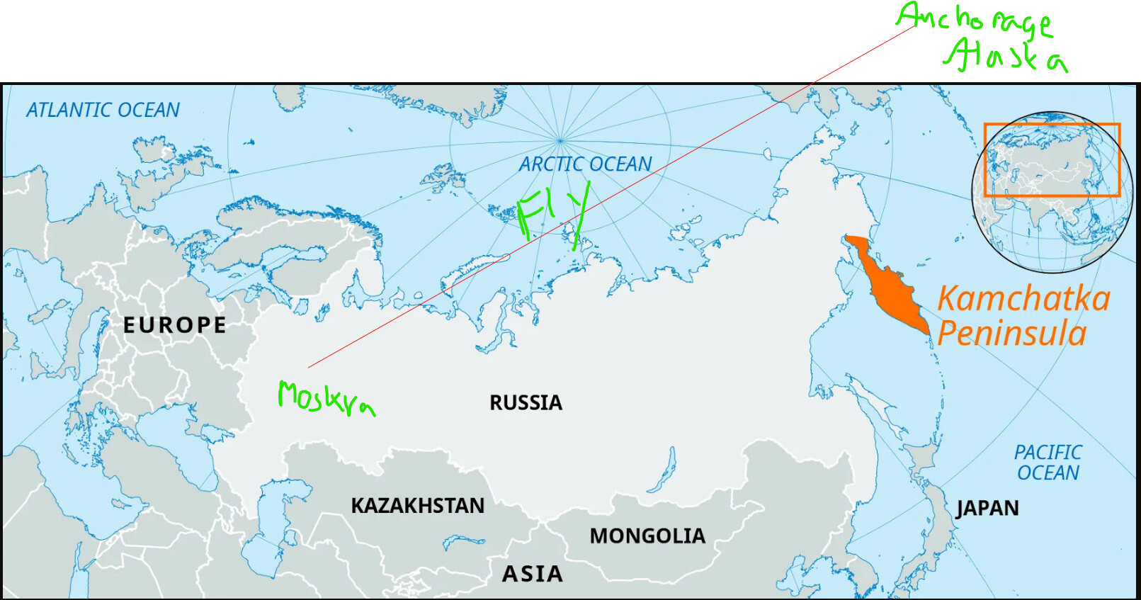 Eller at det ligger helt på flyruta, jorda er tross alt rund, og det er langt fra Moskva til Alaska: