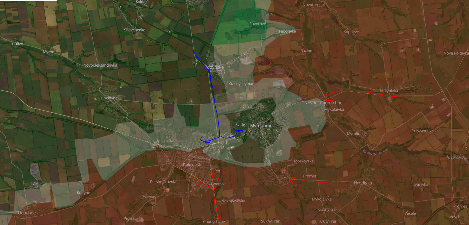 Jo, det ser mye letter ut for russerne, de skal ikke inn i en lomme. Spesielt de innerste posisjonene må være et helvete. Hvis Ukraina i det hele tatt har folk der.
