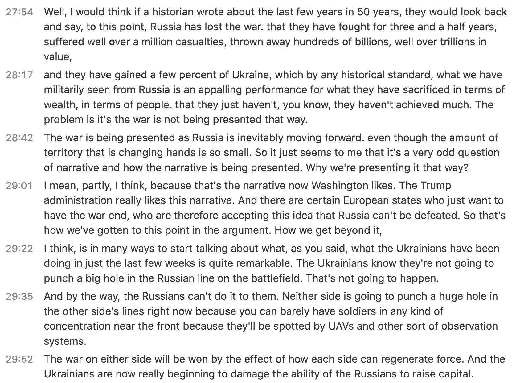 Den utrolige inkompetansen i de russiske styrkene med å kaste bort sitt materielle og menneskelige overtak i en uendelig kjøttkvern kommer til å være det som slår beina under dem. Sammen med Ukrainsk, fysisk ødeleggelse av finansieringskilder, og utrolig nok sanksjoner.
