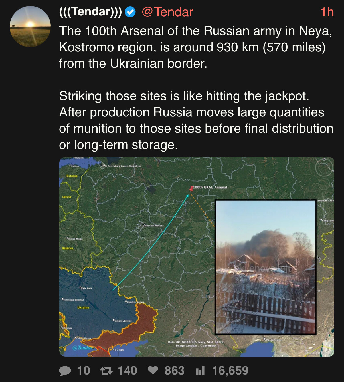 I tillegg til angrepet dokumentert rett ovenfor. nevner jeg at Ukraina gjennomførte et relativt omfattende angrep luftveien i natt. Mange mål på ulike destinasjoner i Russland: