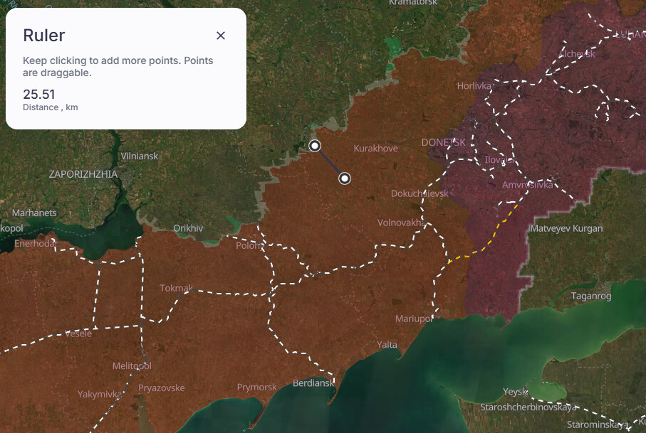 Jeg aner ikke hvor i Zaporizjzja dette har skjedd, men her er et hint om hvor langt inn 27 km er.