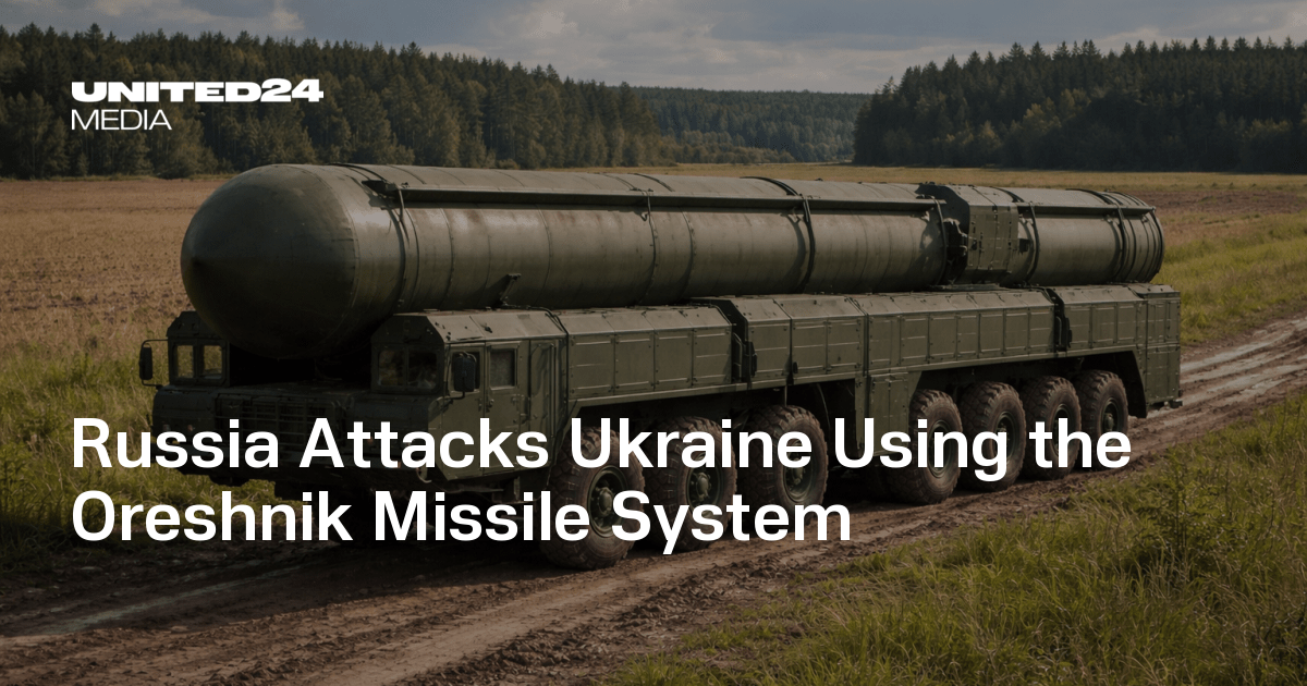 Det ballistiske «Oreshnik» missilet ble skutt opp fra utskyting stedet Kasputin Yar, i Astrakhan oblast (NV for Kaspiske hav). Dets bane mot Lviv er markert med en rød strek fra høyre billedkant, tvers over mot Lviv nær venstre billedkant.