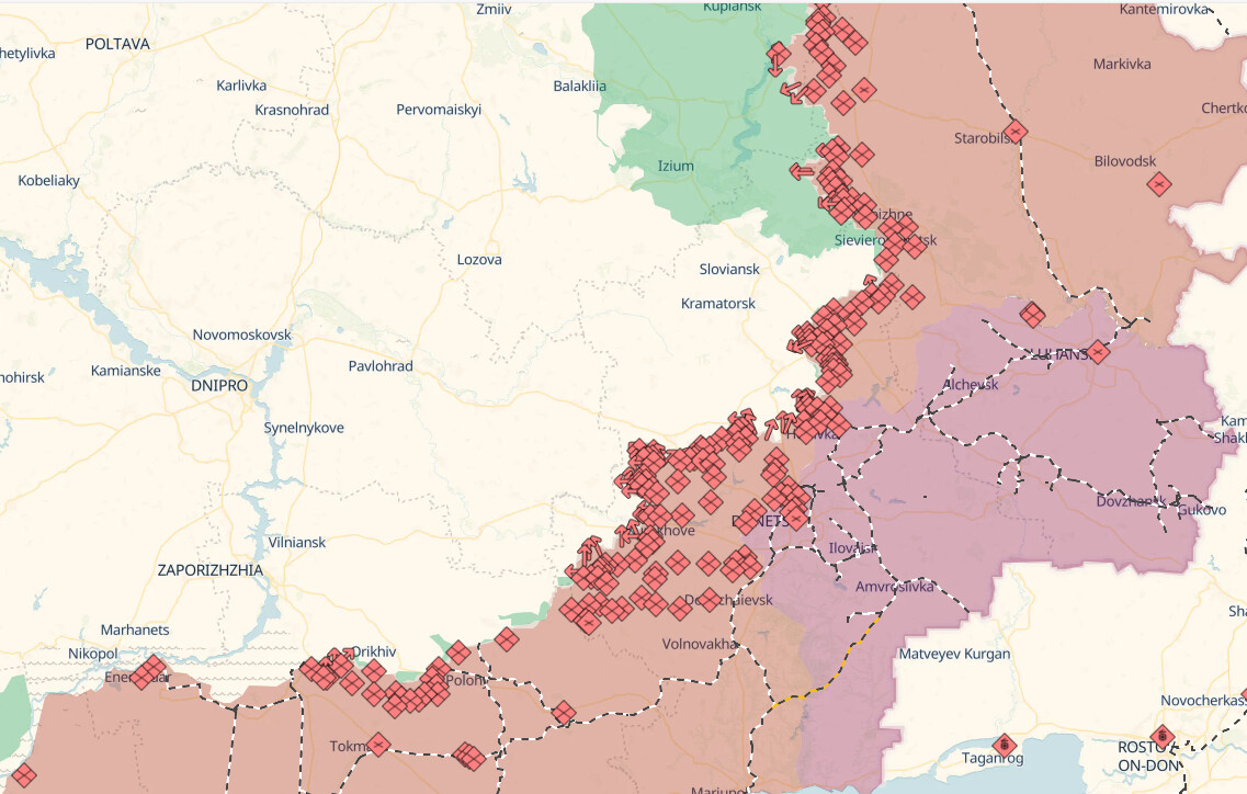 Ja, ble bare veldig overrasket i forhold til følelsen man får av å lese her. Trodde virkelig det var mer ujevnt langs fronten, men Russland bare ruller inn sakte men sikkert. Ikke et sted man ser Ukraina slå igjennom siste 7 mnd langs den fronten jeg viser over hvor mesteparten av kampene er. Russland overstrakk seg over et lite område som ble tatt tilbake en gang der, men ellers er det bare Russland som vinner grunn. Får bare håpe de går tom for folk og skyts etter hvert, eller Ukraina klarer å pushe fram, men ser ikke ut som det nå.