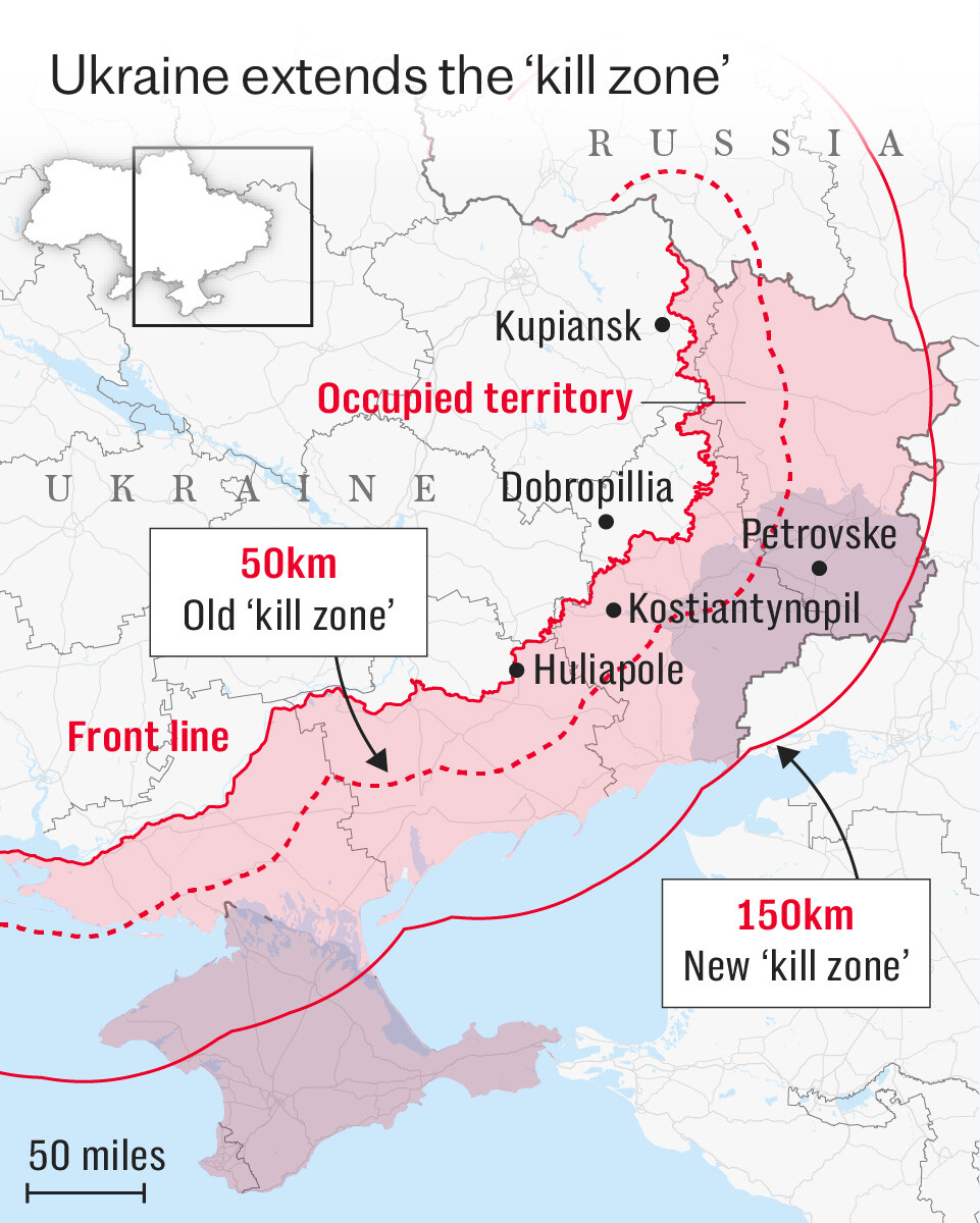 Lastebilene med ammunisjon må ikke bare kjøre inn i killsonen. De må kjøre på langs av denne sonen. Det skal bli hardt for Russland å opprettholde et artilleriovertak i sør.