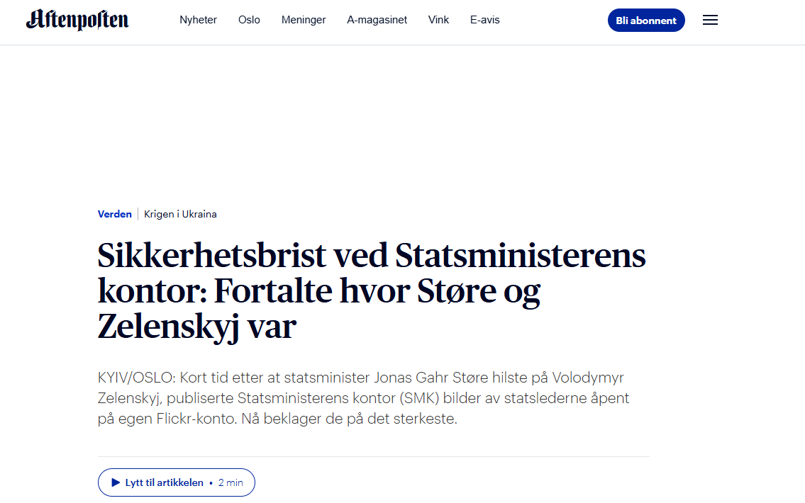 Fakta er at noen avslørte hvor zelensky og støre opphold seg. Som er rimelig krise.