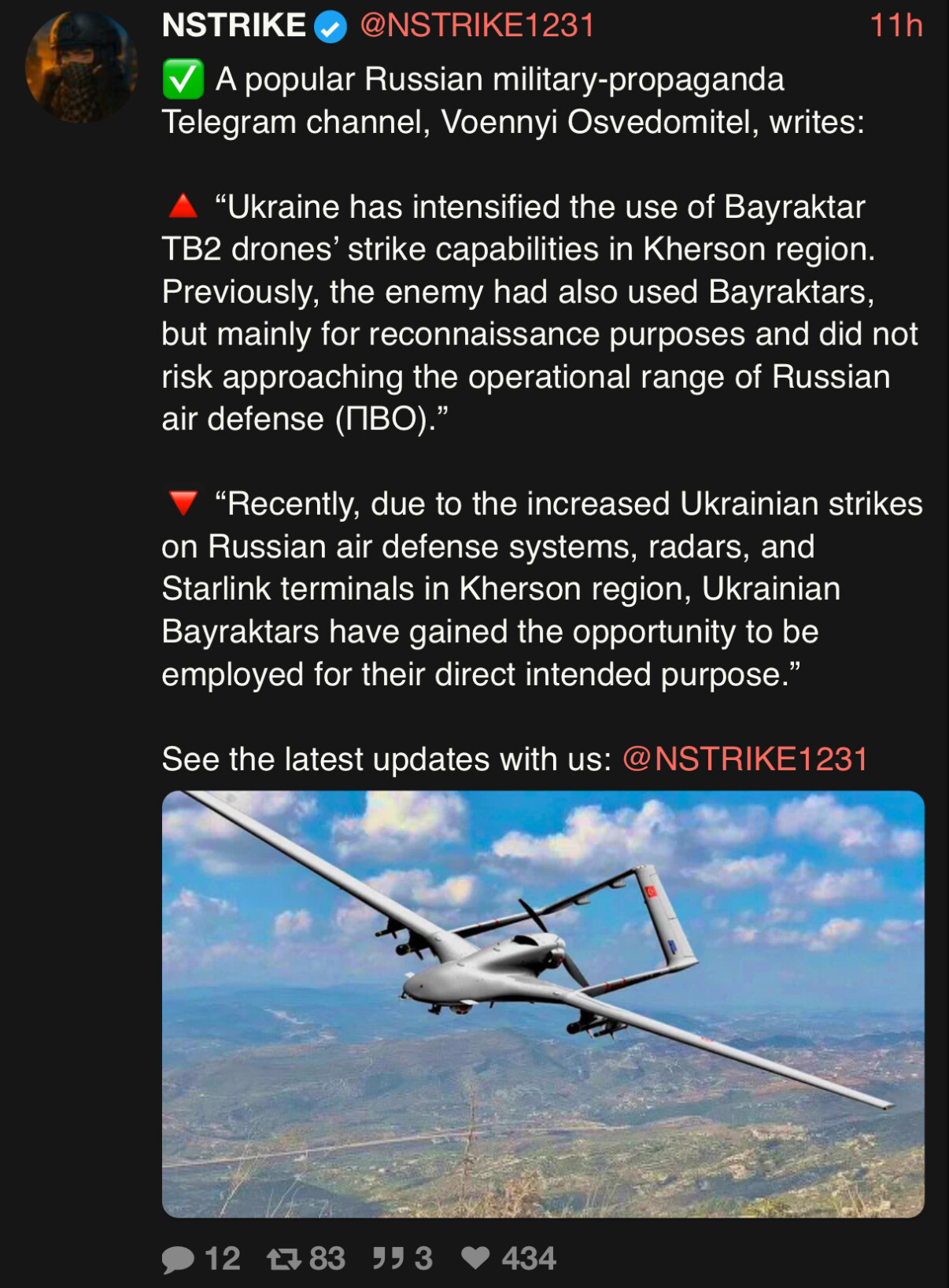 Ukraina flyr allerede nå TB2 over vestlige deler av russiskokkupert Kherson. Det betyr i praksis at Russland mangler radardekning der. Utvides denne “frisonen”, blir det verre å få inn forsyninger fra Krim til Kherson.