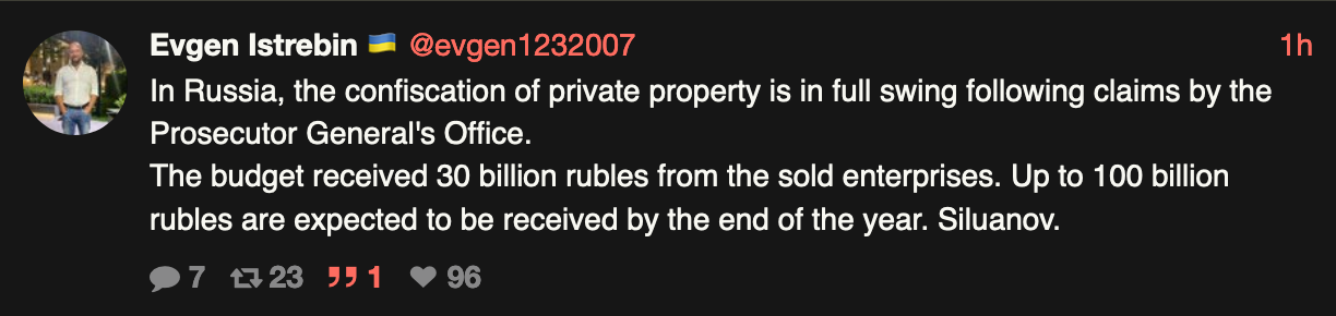 Av og til lurer jeg på om det russiske finansdepartementet også tror at Ukraina vinner. De velger nå ekstremt kortsiktige løsninger, i et forsøk på å redusere det ekstreme budsjettunderskuddet.