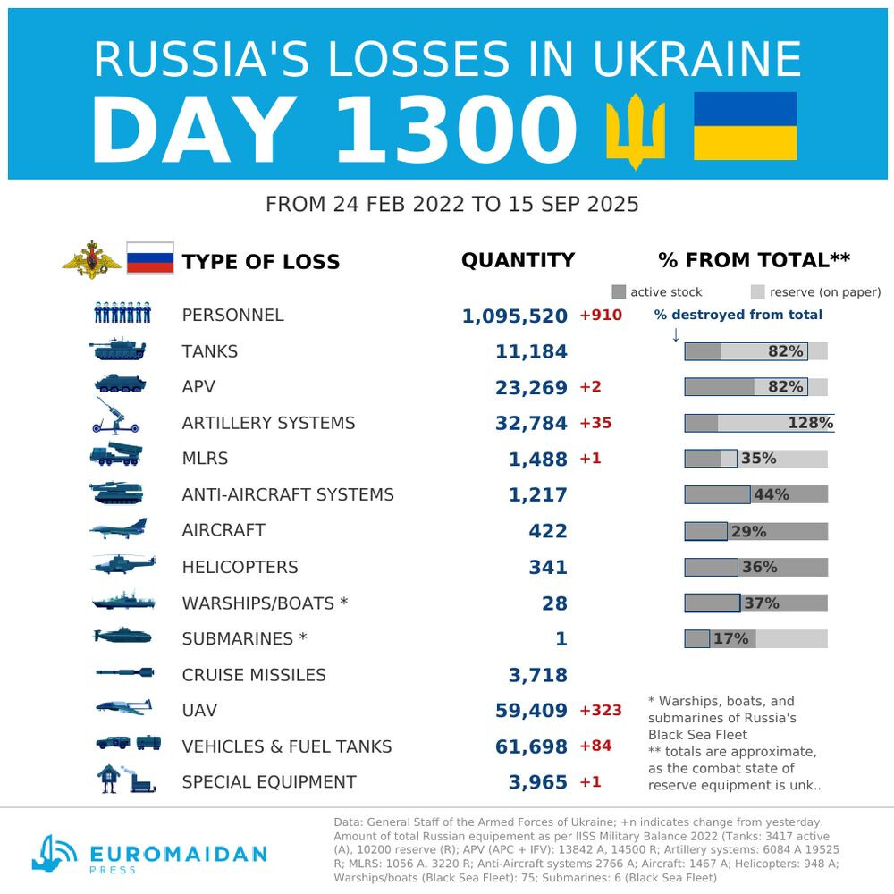 Tallene for ruzziske tap er allerede rapportert av @Sorene , men siden det var 1.300 i går er kanskje det verdt å dvele litt over tallene og bruke denne oversikten som viser tapene i forhold til kjente militære ressurser: