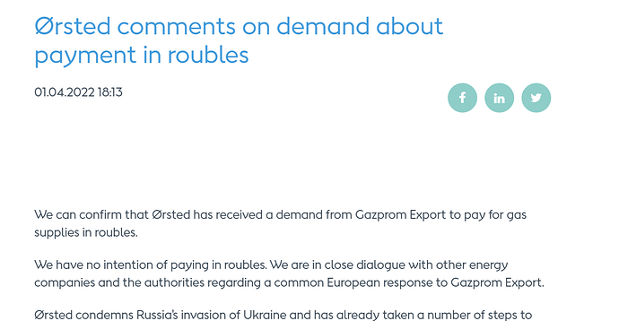 …no intent of paying in roubles. We are in close dialogue… …regarding common European response to Gazprom…
