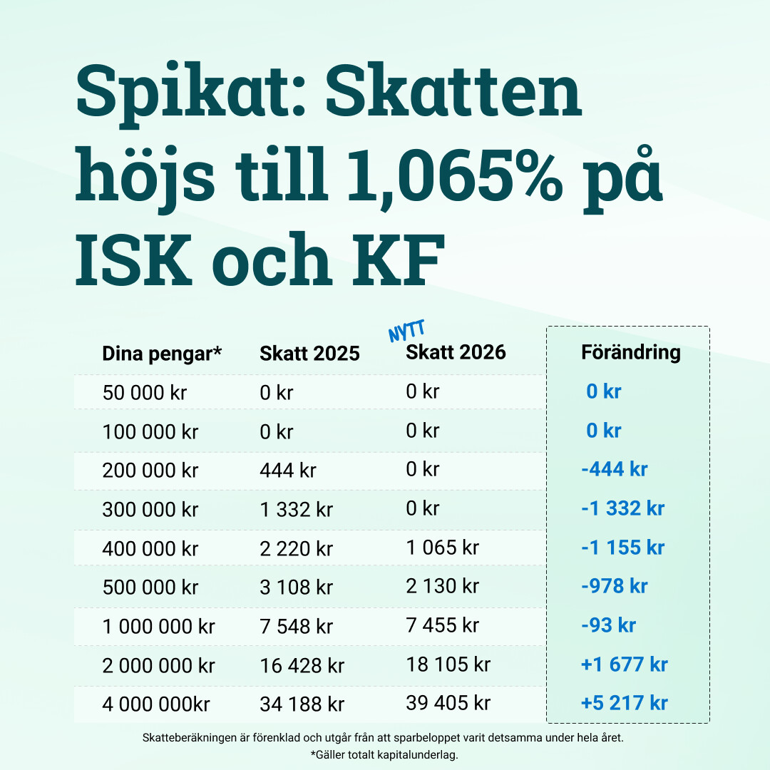 Må si at jeg elsker det svenske skattesystemet her er all skatt du betaler på ISK (tilsvarer zero) uansett om du tjener (eller taper 🫣) millioner