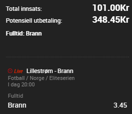 Så hvor mye vinner du da? LSK ser ut til å tape og jeg får rett i at Brann vinner kampen