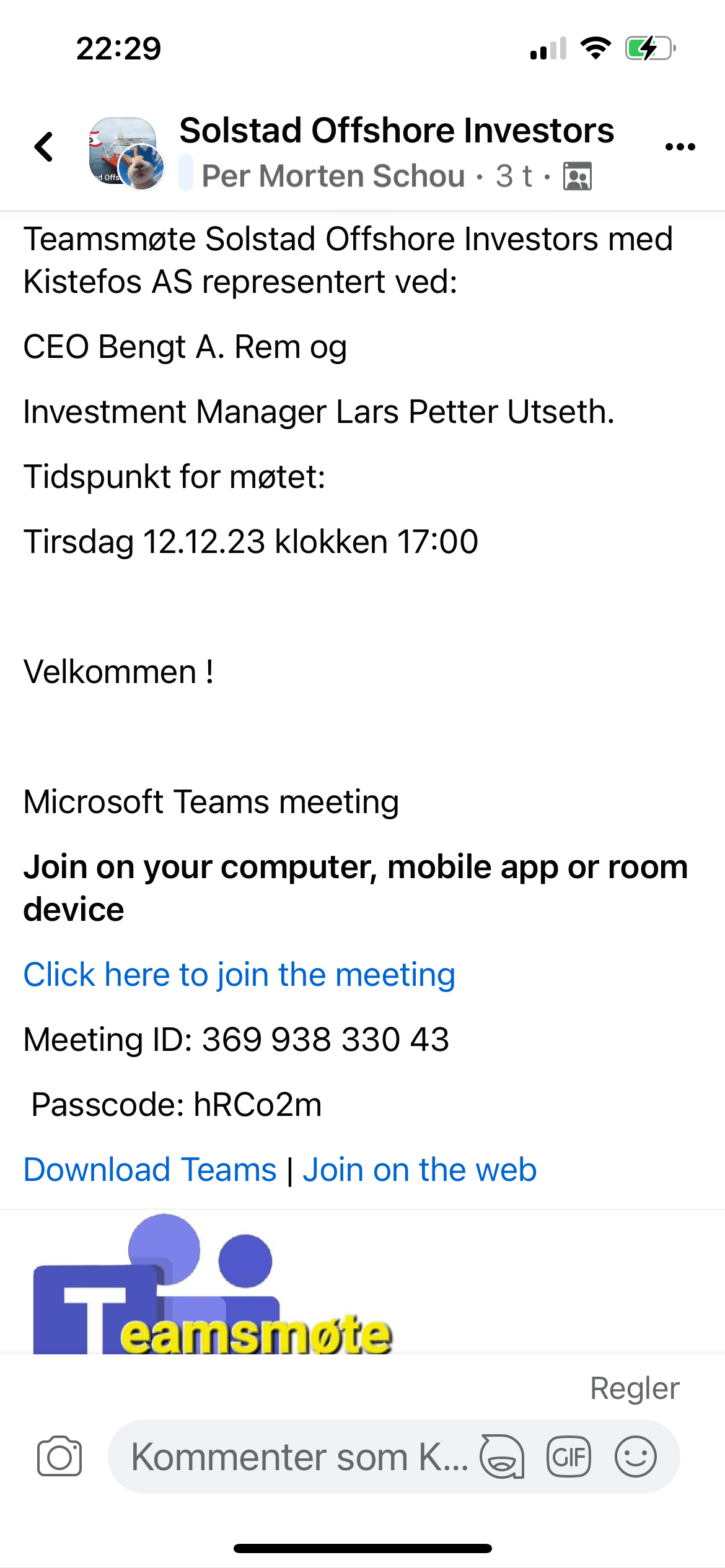 Tror vi kan få litt FOMO i morgen pga. Kistefos v/Bengt Rem sitt møte med FB-gruppa kl. 17 samme dag.