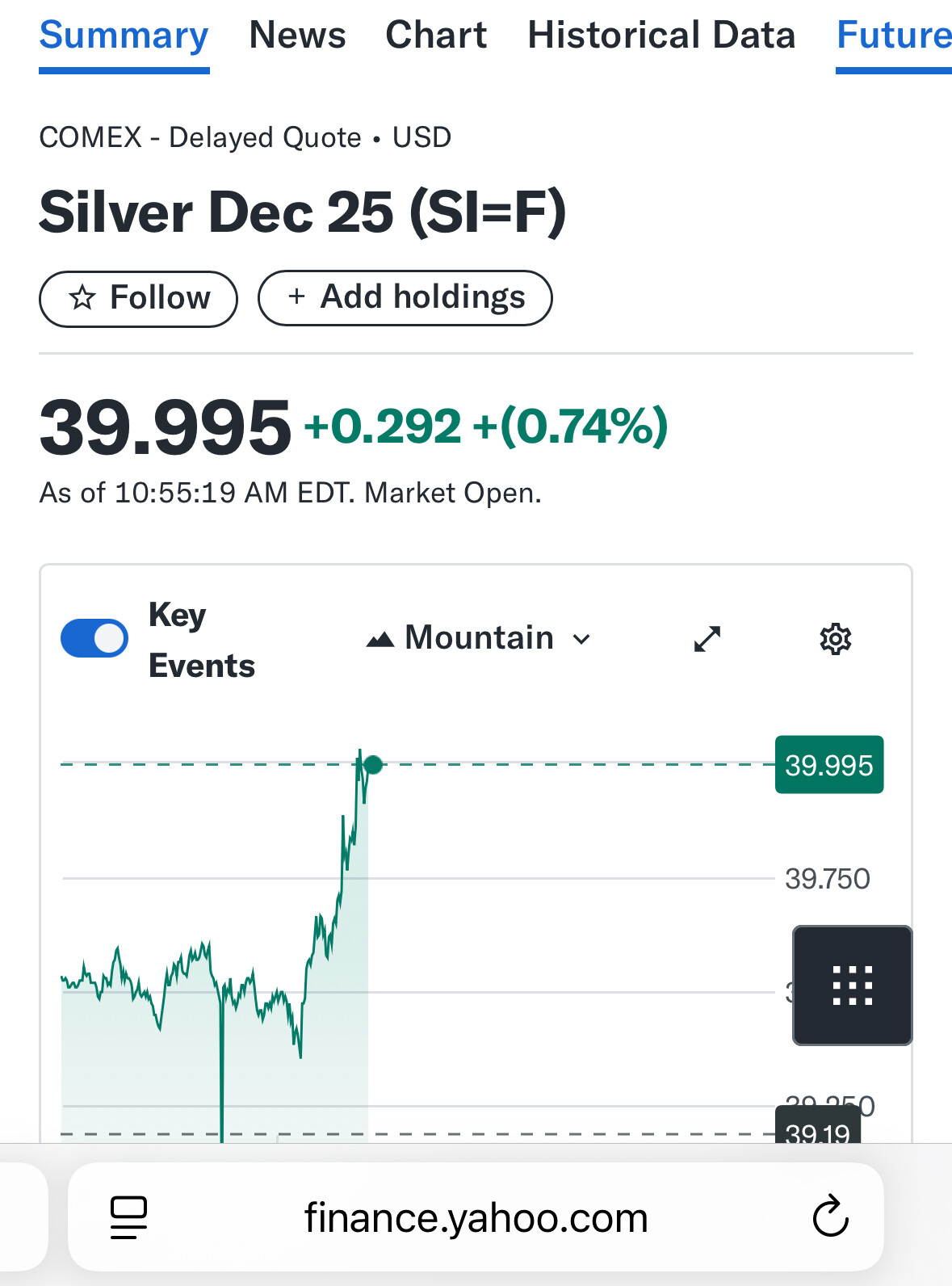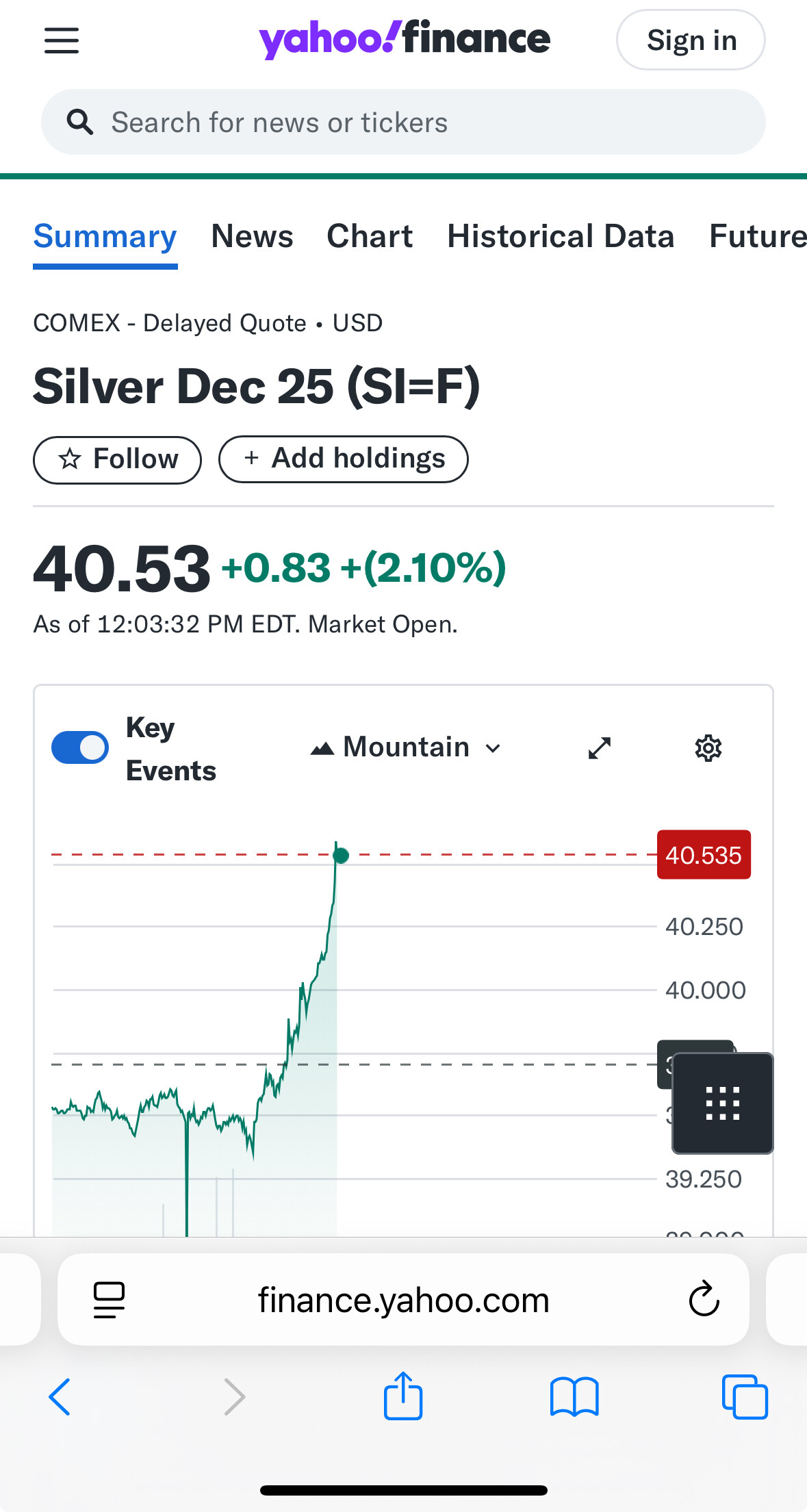Husk å bruk korrekt ticker (comex) vi closet over 40 på fredag