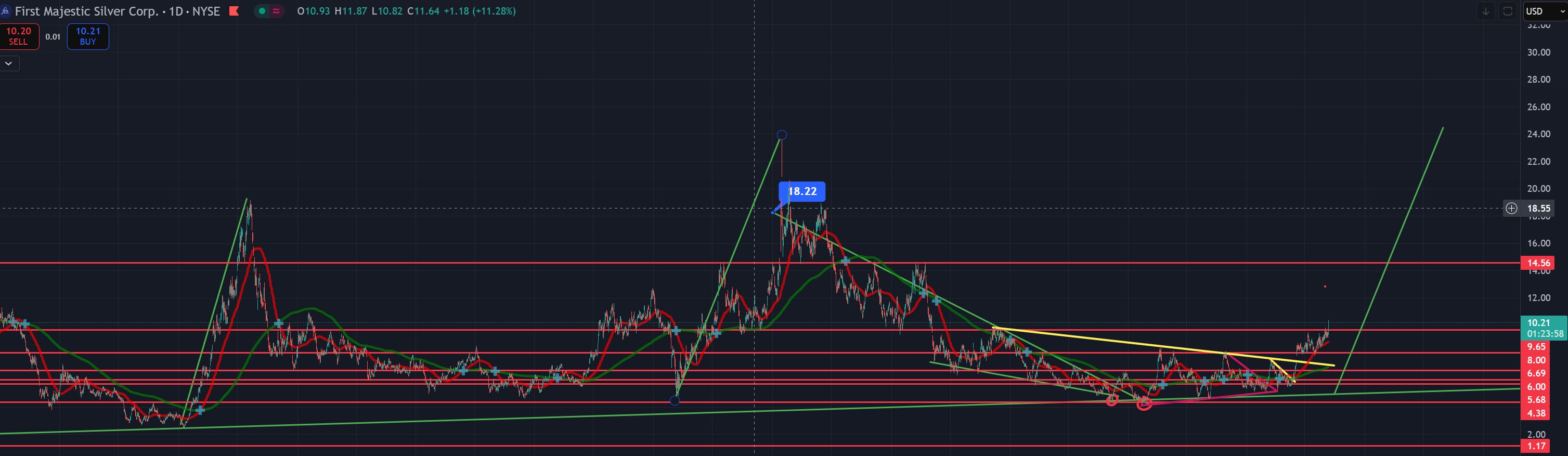 Brudd ut av 17 års nedtrend (weekly)