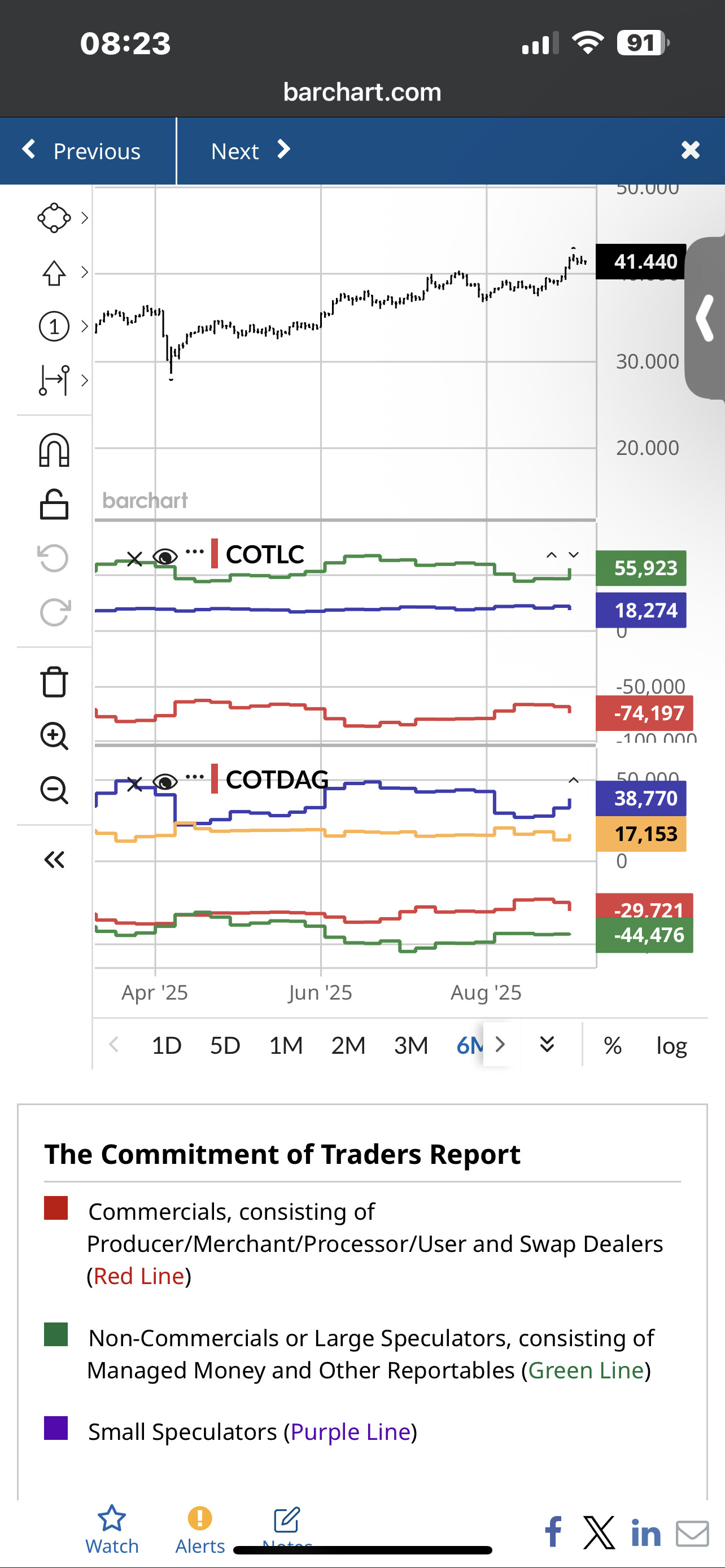 Vedlagt ser man at spekulanter er long i sølv, der er miners som short. Ikke unormalt når prisen har gått så mye. De skal sikre sitt selskap