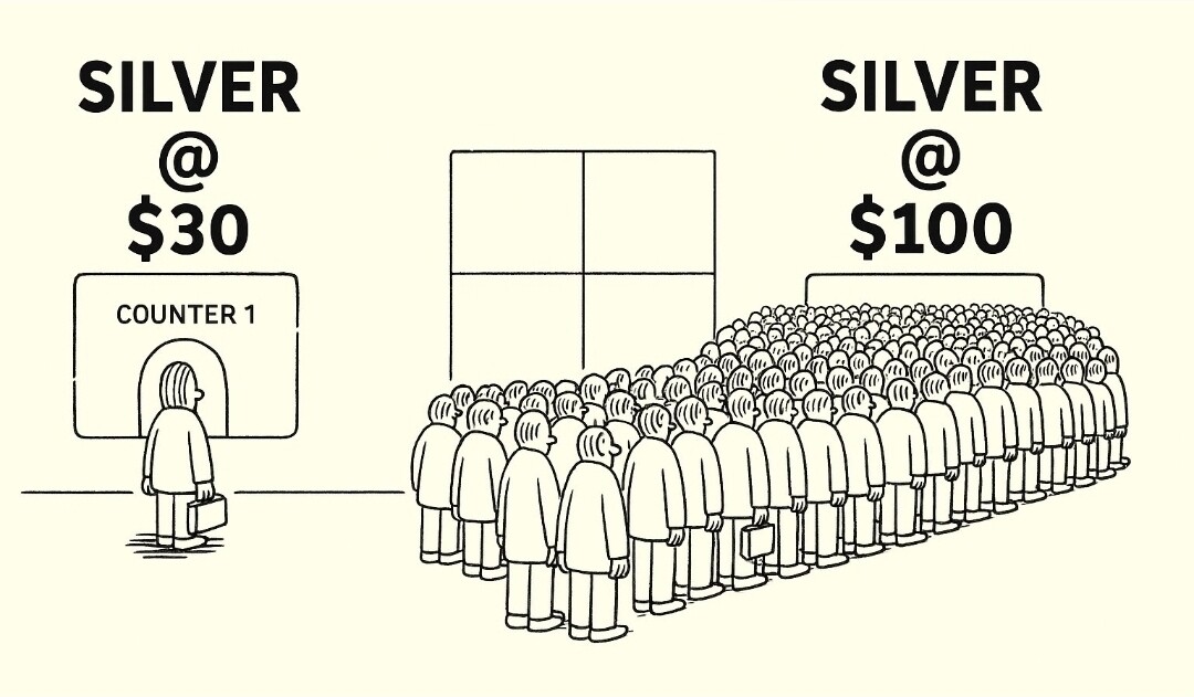 Det vi ser i sølv nå tror jeg er samme vi så da bitcoin var 1000 dollar …. + bitcoin er ubrukelig til …… alt untat store of value (så lenge du har strøm… da)