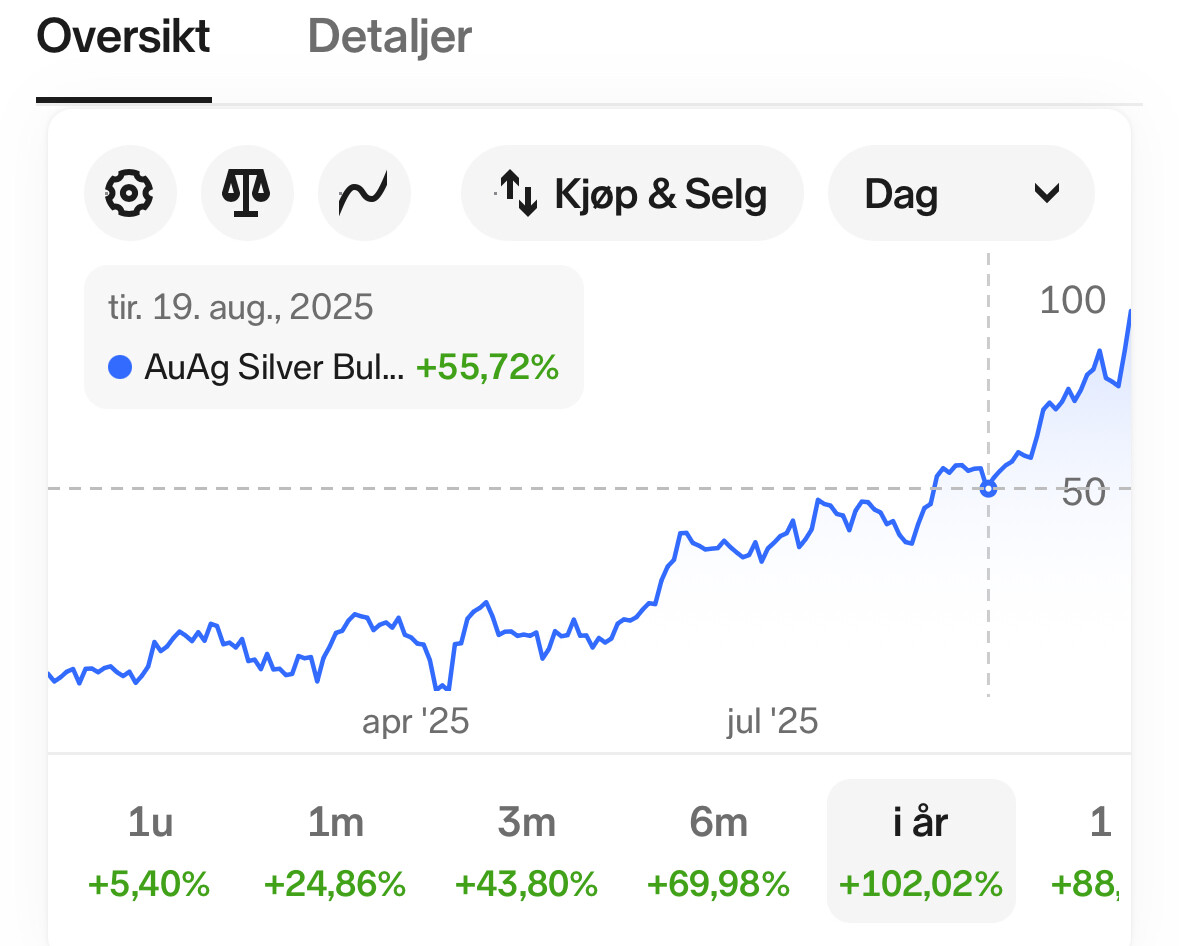 Det aller verste er at jeg tror sølv er fortsatt ekstremt billig. Jeg er så utrolig glad for at jeg gikk inn med en god sum når vi hadde 100:1 sølv. Men tenk gull går jo like mye.