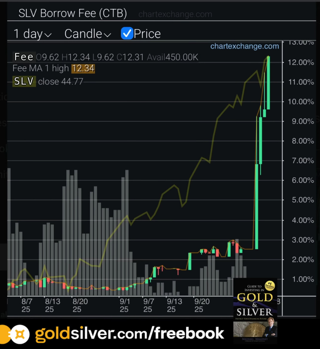 Når det gjelder shorting av sølv, nevnes det lånerente på 12% for noen dager siden, helt opp til 20-30% nå!
