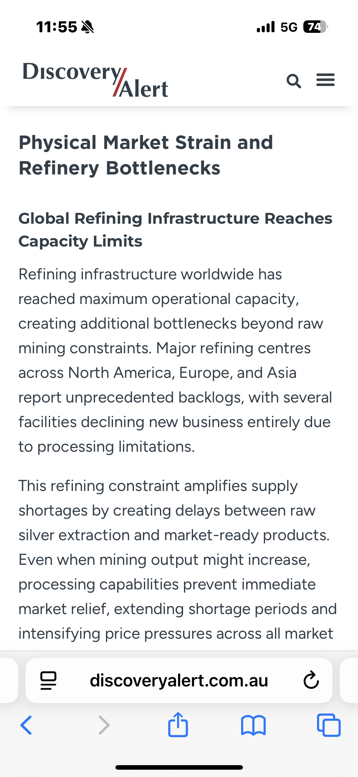 Hørte noe om det, at pga at prisen kom opp mot $50 så begynte folk ( i US?) å selge sølvtøy og junk silver coins for å redusere gjeld/kjøpe mat. Dette må raffineres til 999 før det kan selges til industri og nye coins. Refineries klarte ikke økningen og det er kø der. Dvs det er for mye 80-92,5% sølv og for lite 99,9% akkurat nå.
