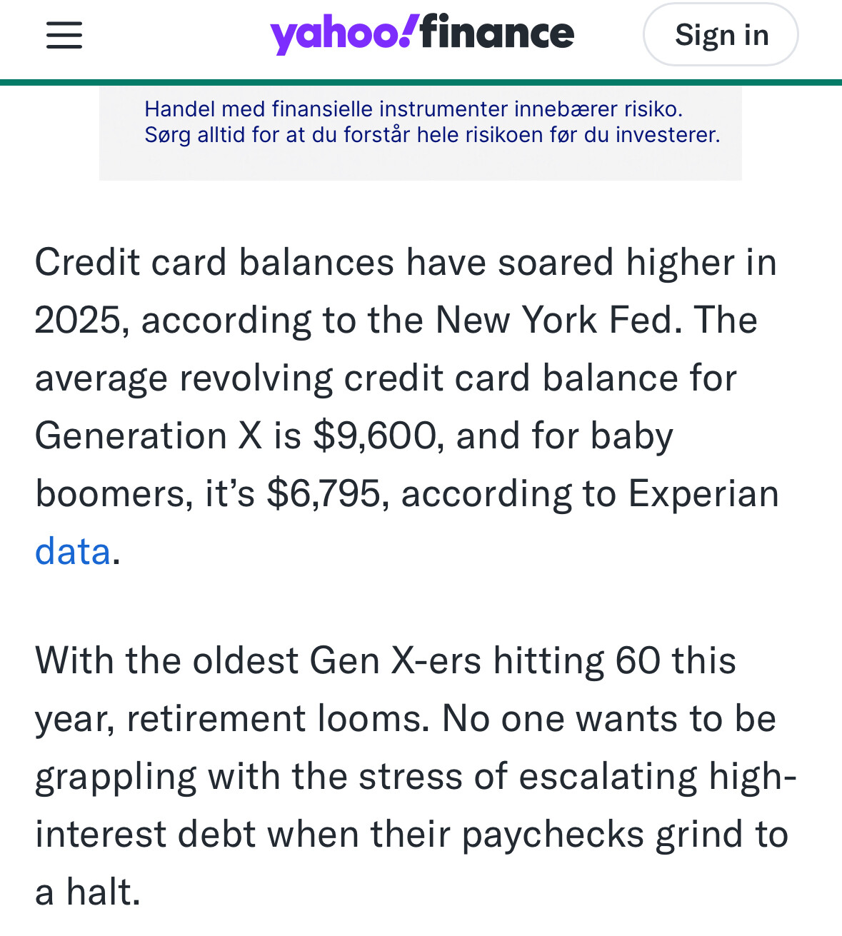 Tenk snitt kreditt kort gjeld er nesten 100 000 kr med rente på snitt 22.6 % (for gen x 45-60 år) . Dette er jo ikke folk som ikke har jobb, men de som “burde” ha ok økonomi.