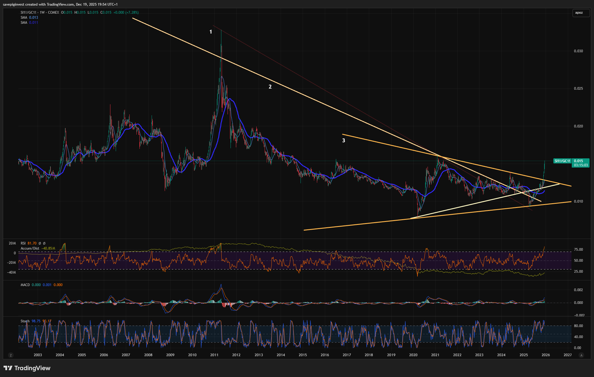 Spennende å se om det kommer en stor korreksjon i silver/gold ratio nå