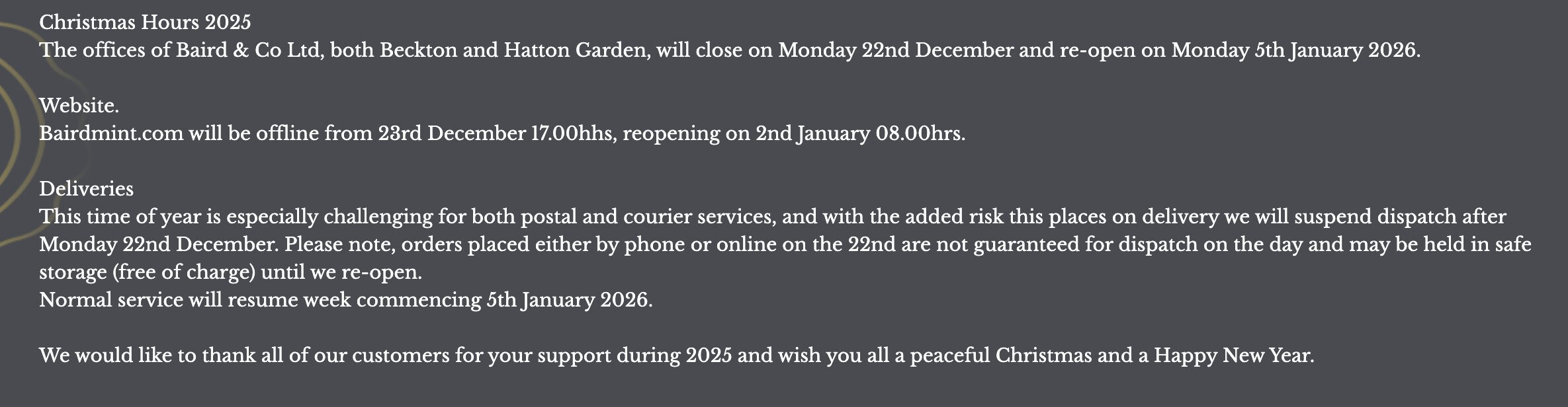 Var inne å kikket på suissegold.com. der kan du kjøpe sølvbarrer. Når du ser på de største så ser en 2 uker og 4 ukers leveringstid. De har dem ikke inne i stock lenger. Blir veldig interessant å se om det kommer en korreksjon.