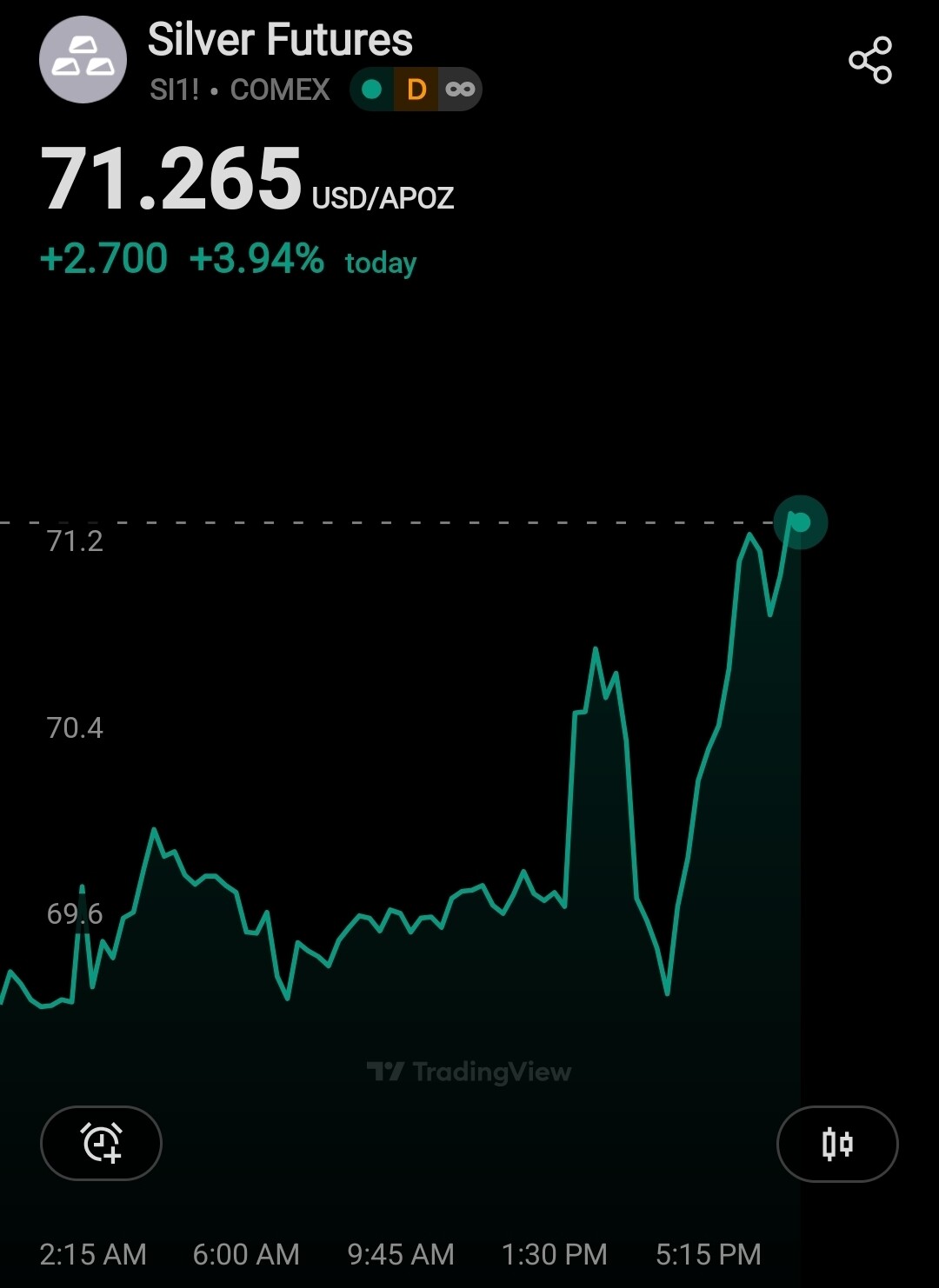 78! Ser det. Men det er helt vilt. For et stort sprik til 72. Da vet vi hvem som får kjøpt sølvet her og der. Det er den som betaler mest. Da går det til Kina.