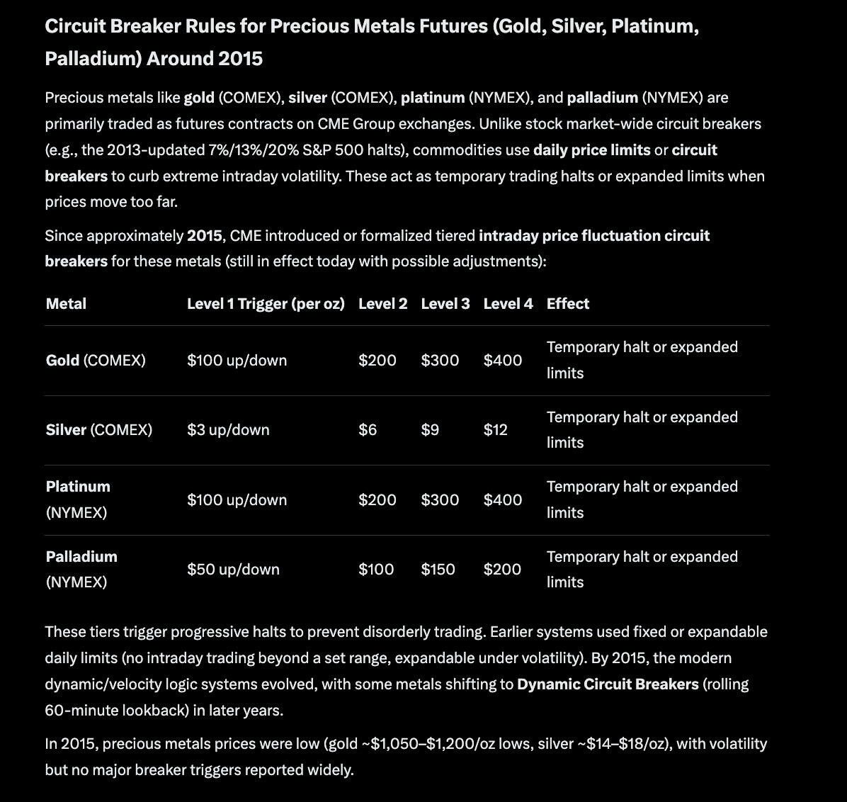 Så alle mekanismer for å bremse prisen på comex, svekker bare comex. Snakk om å være fucked.