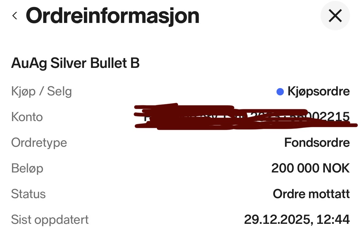 Sølv er så lite og det skal utrolig lite spekulasjoner for at markeds verdi dobles 3 dobles 4 dobles. Fortsatt må bedrifter ha sølv. Risk reward er utrolig lav. Men vi vet sølv er mer turbulent og svinger enormt. Jeg mener kjøp. Så her er hva jeg gjorde i dag.