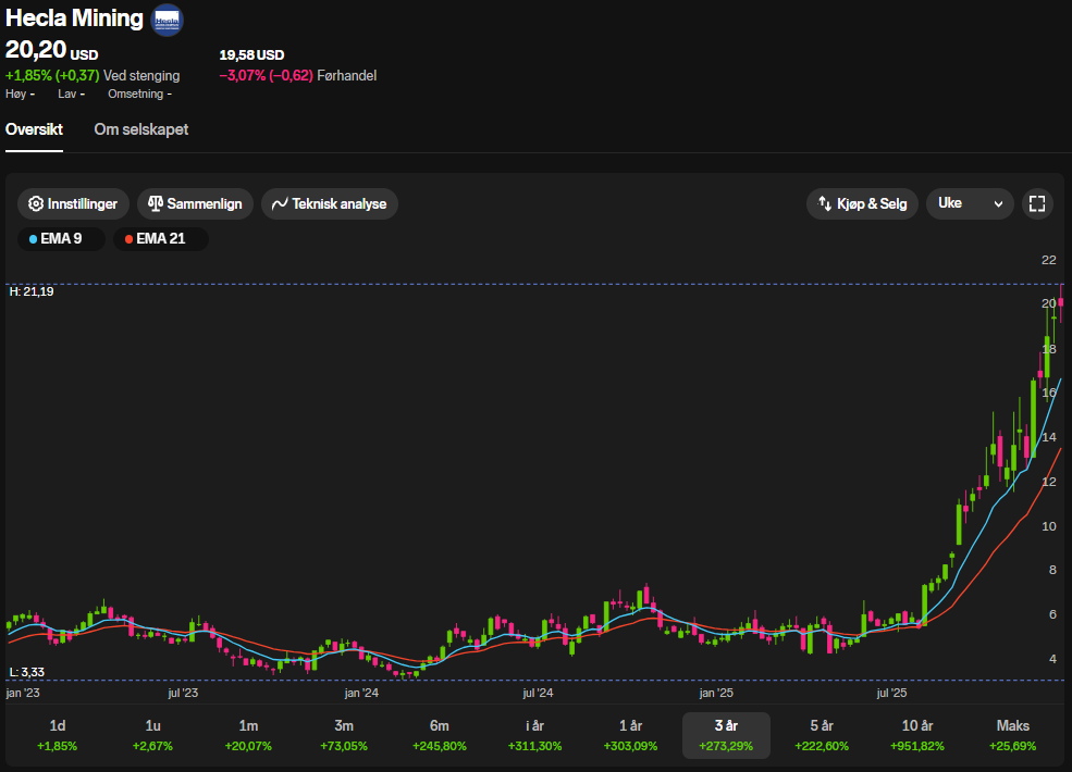 Sølv fysisk. Siste kjøp da det var 101:1 mot gull. Nå er det dyrt og vanskelig og få tak i. Vil nokk nytte over til gull men tror en ratio på under 50, helst under 35, men det ville vært ekstremt bra. Jeg tror sølv kan gå ned på 20 tallet men ikke uten mye nerver opp og ned.