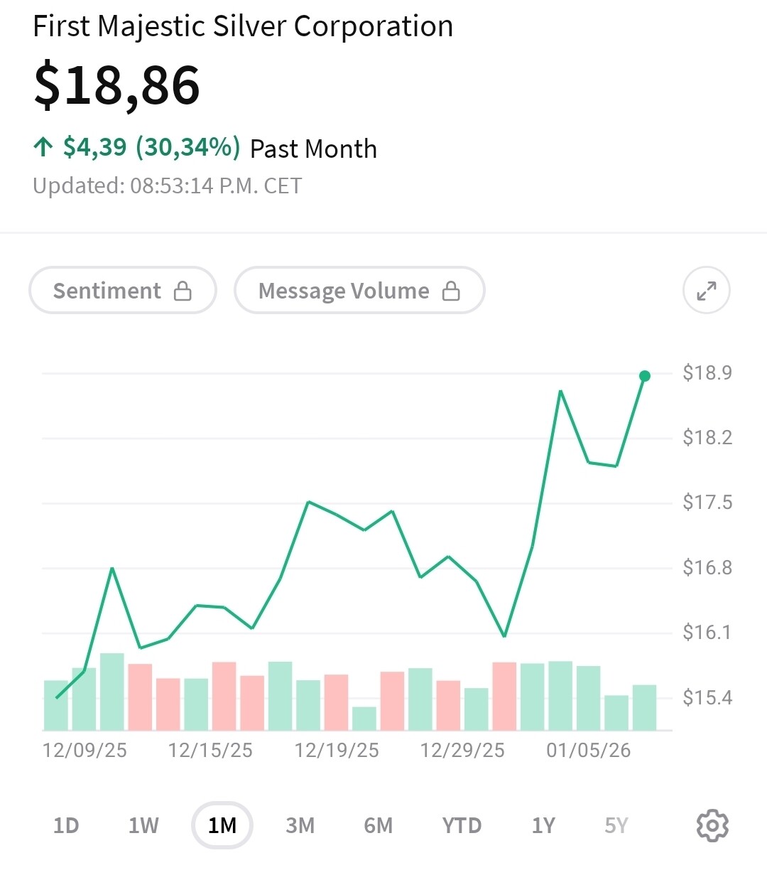 Det der er faktisk ganske dårlig. Sølvprisen har vel gått 36% i samme tidsrom.