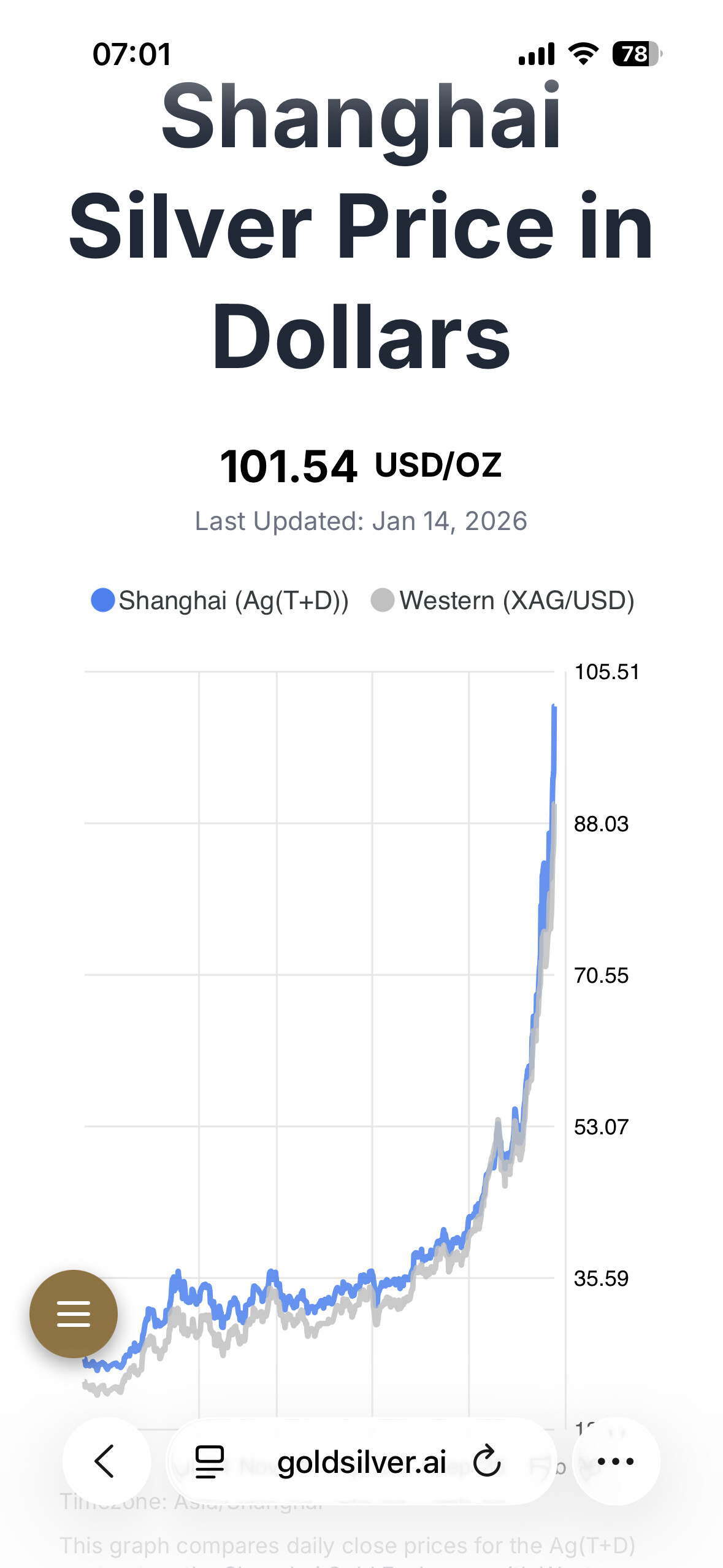 Vet ikke om denne stemmer men ser og flere på you tube sier det samme. Sølv over 100 dollar Shanghai: