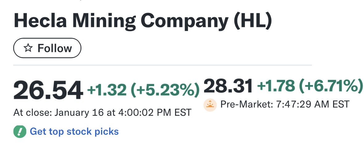 Ser ut som ting vrir seg litt i dag. Miners opp, spot ned. Slik har det ikke vært på en stund.