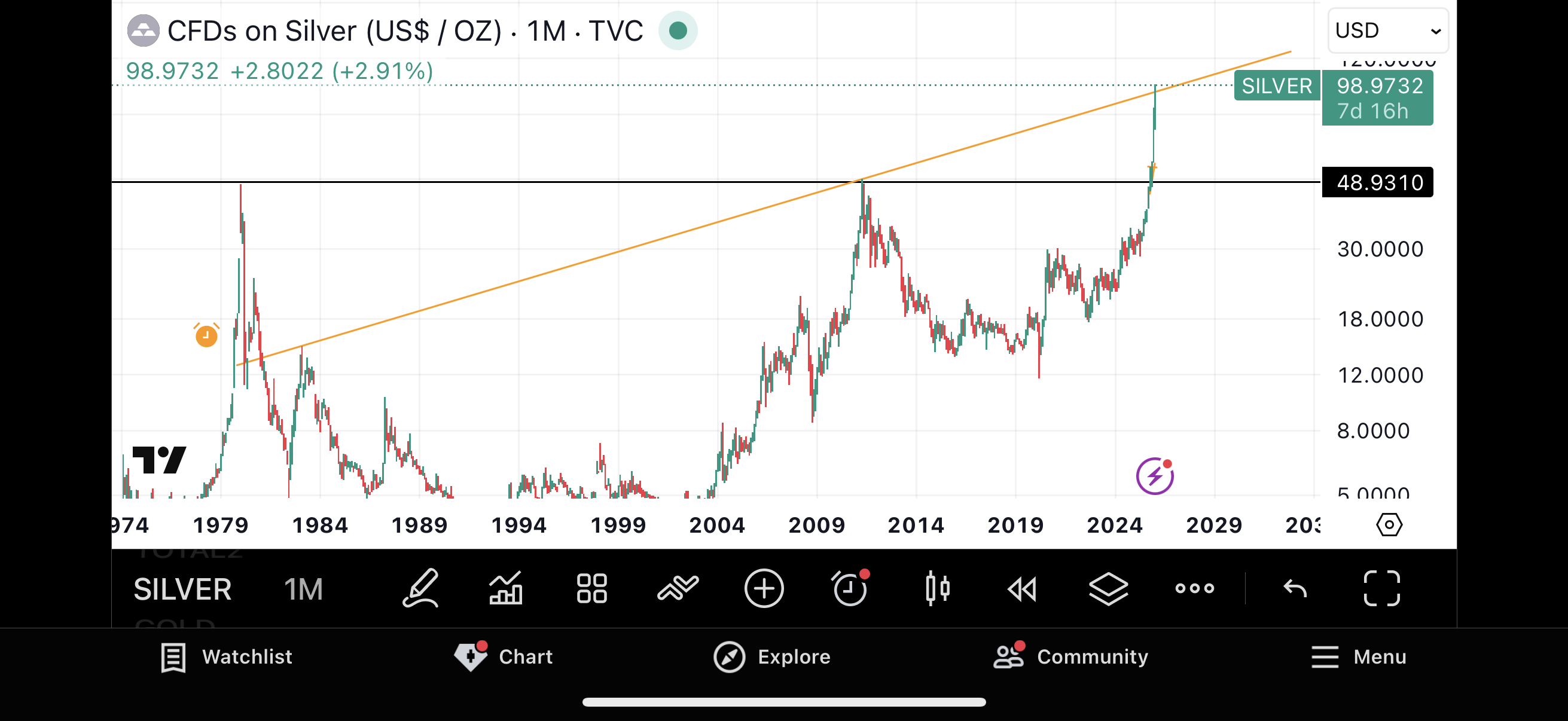 Det er merkelig hvordan man blir utålmodig med sølv og tenker at nå har prisen sløvet lenge nok rundt 90, kom deg videre til over 100 liksom!