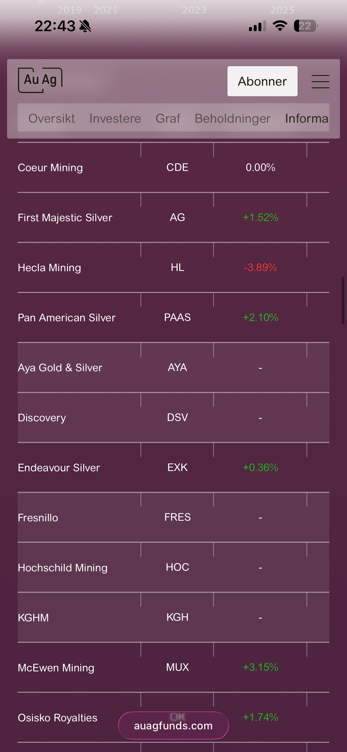 Sølv stiger 10% og gruver (fondet ) går nesten ikke.