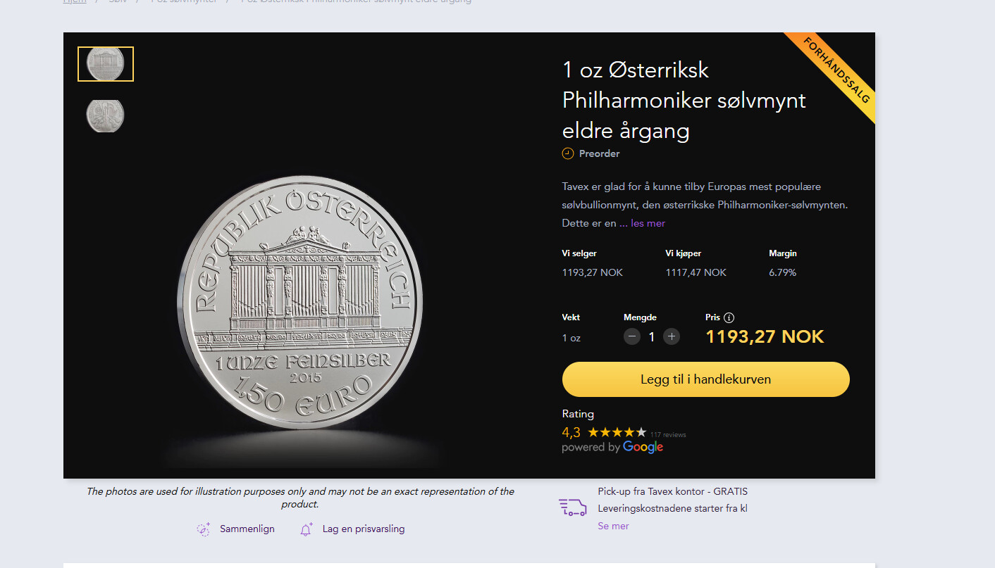 Mynthuset har noen mynt på lager nå, til den nette sum av 1300,- pr unse.