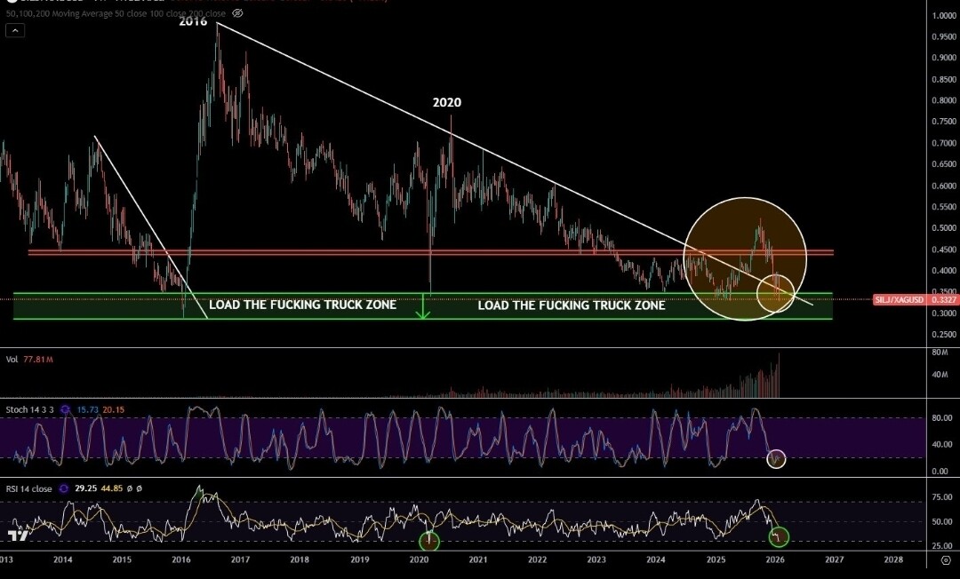 Ser det er mange her som ikke forstår hvordan en parabola utløper seg. Det er aldri feil å ta profitt osv, men vi skal mye høyere i år. Både minere, og sølvprisen