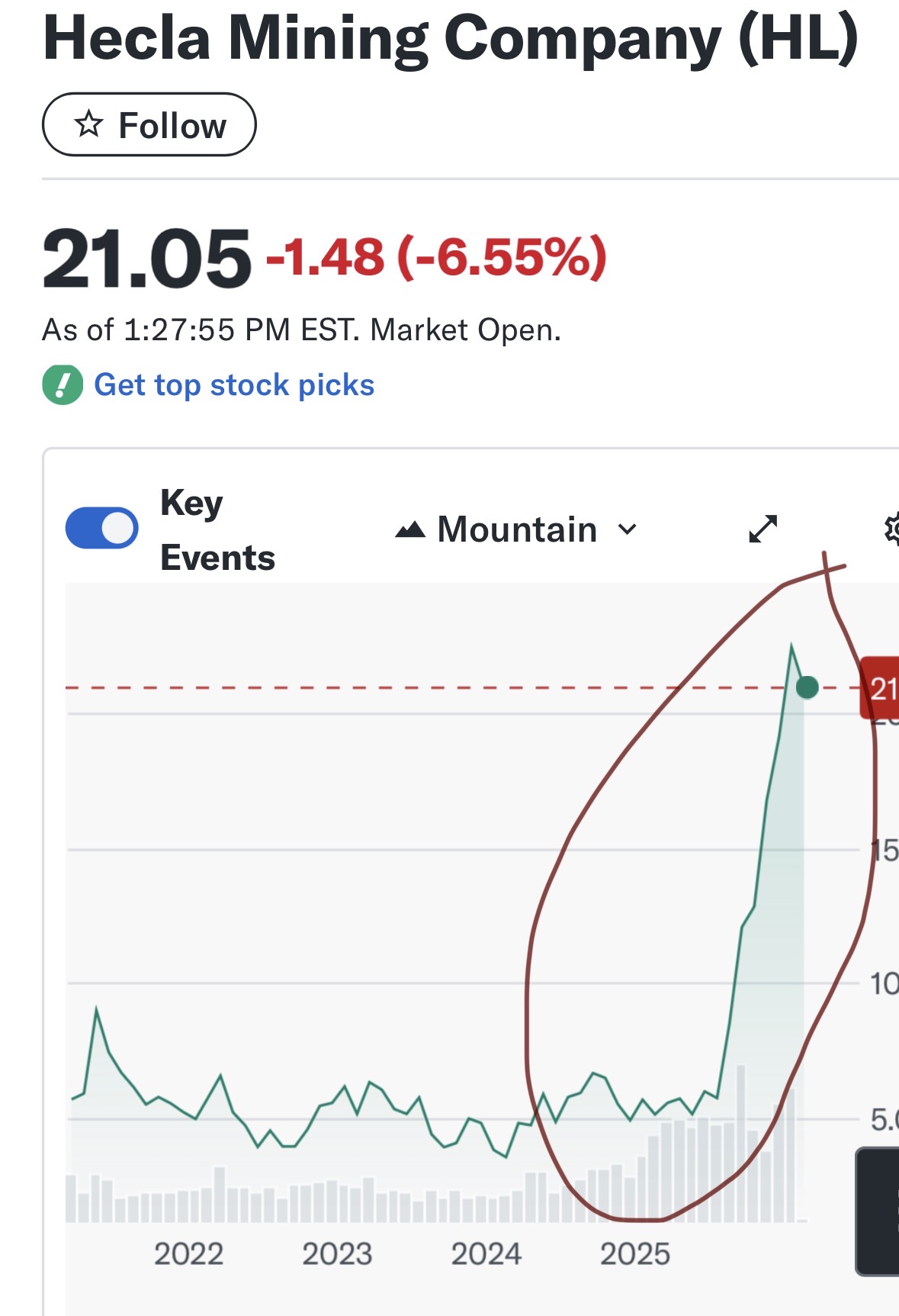 Når sølv var på 25/30 var det meget fornuftig og flytte 20% av pensjonen inn i sølv. Nå for en til 2 uker siden ble hele kost + litt til flyttet til kjedelige global indeks fond og nå har vi flyttet halvparten av det igjen og er til bakerst på 20%. Jeg tror fortsatt på gruver og mineraler vil gjør det bra frem over men diversifisere er nøkkelen. Og går noe enormt bra og dobler / tredobler høst godt.
