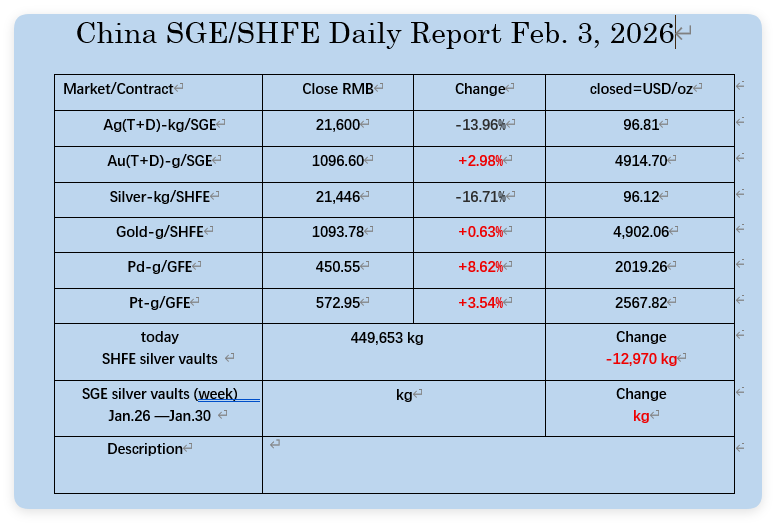 Shanghai Gold Exchange (SGE) raises its margin requirement from 20% to 26%.