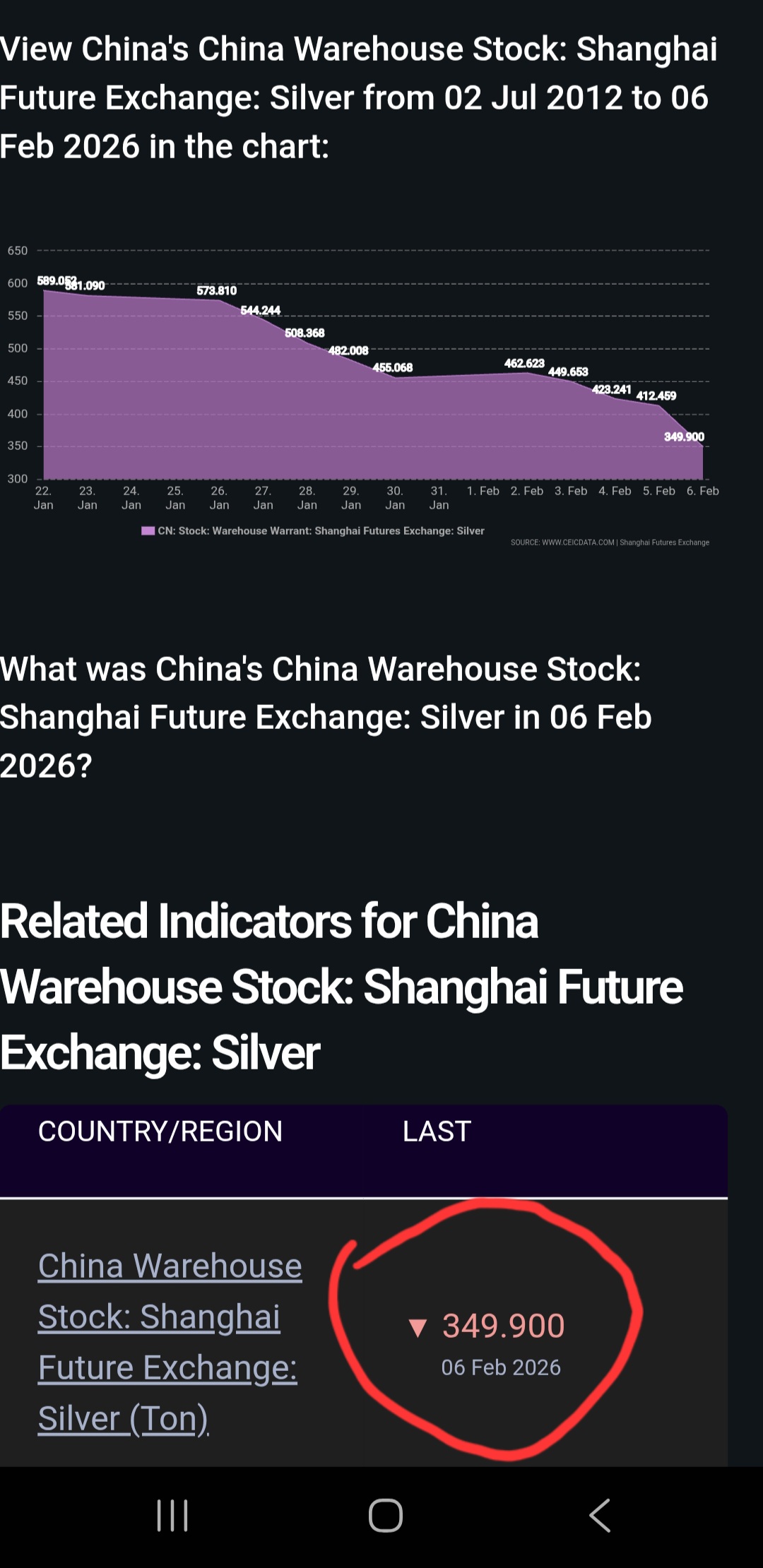 Gikk virkelig sølv inventoryen i kina ned fra 412 til 349tonn på en dag? Det var ekstra mye .