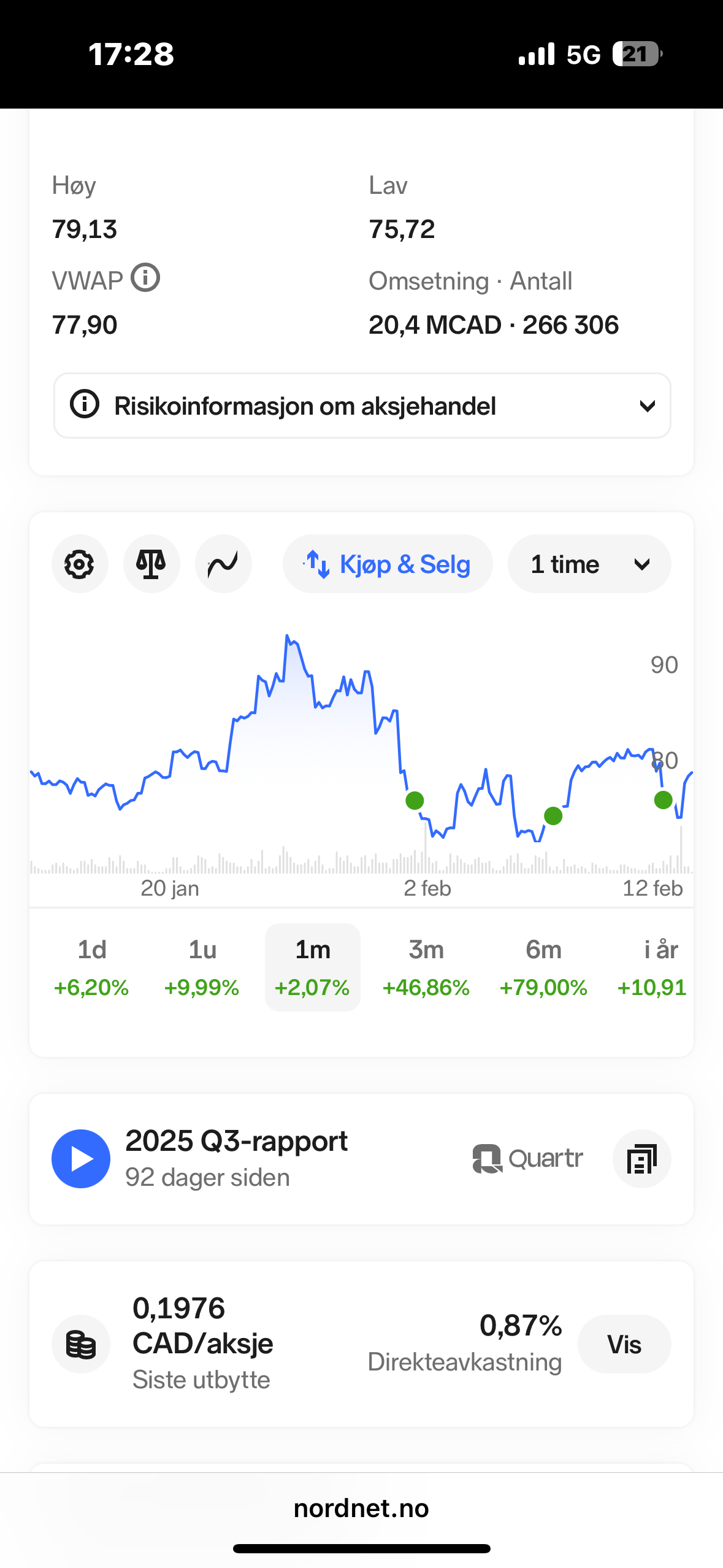 Snart Q4 og hva de tenker fremover. Holder prisen seg her eller over de neste 3-5årene så kommer disse selskapene til å tjene latterlig mye penger og d må vel etter hvert prises inn. Kanskje d drypper litt utbytte også.