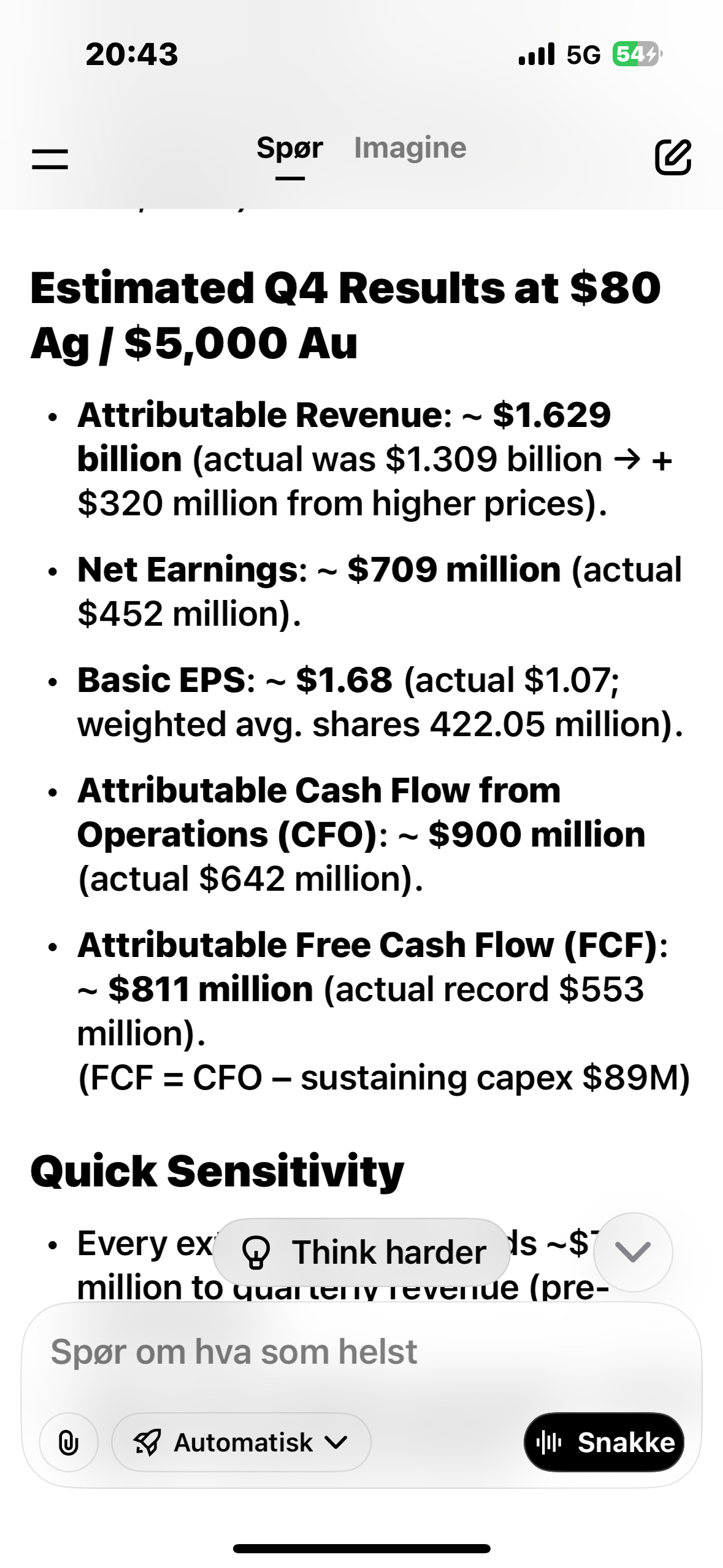 Ba Grok om å bruke de samme tallene som Q4 (kostnader, produksjon)