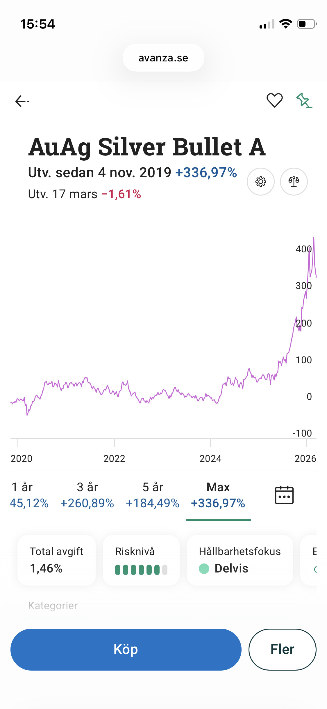 Fra nesten 5% minus til nå, i pluss. Det er bare å smøre seg med en god gode tålmodighet og prøve å ikke bry seg om volatilitet.