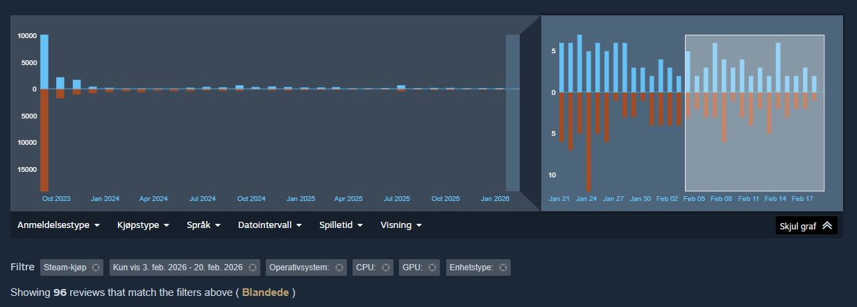 Positive reviews på 51% siste 30 dager, 52% siste 15 dager er ikke tall som gjør at du selger masse.