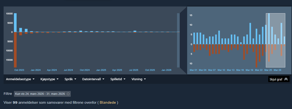 Spillet pleier å få bedre reviews når det nettopp har vært på salg, så får se om de positive reviewene holder seg. Ikke at 65% er noe å rope hurra for altså…