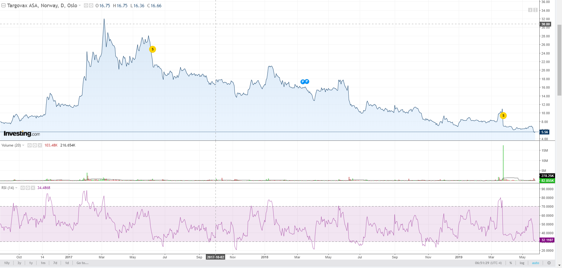 12 juni 2018 falt aksjen -20% da de annonserte fokus på oncos.