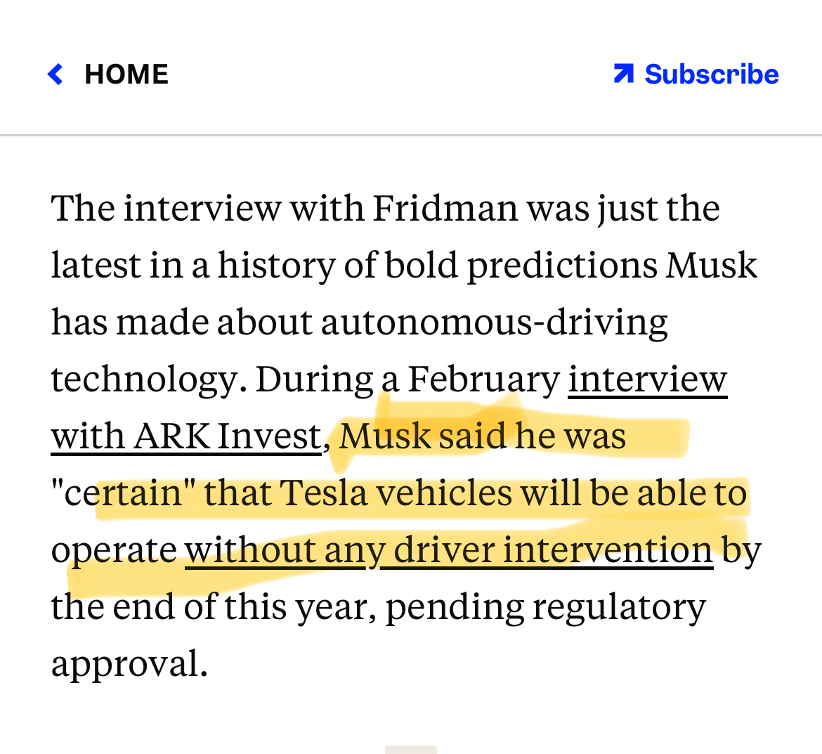 Kan du finne hvor Tesla i 2019 sier de kjører bedre enn mennesker? Jeg er relativt sikker på at det er feil.