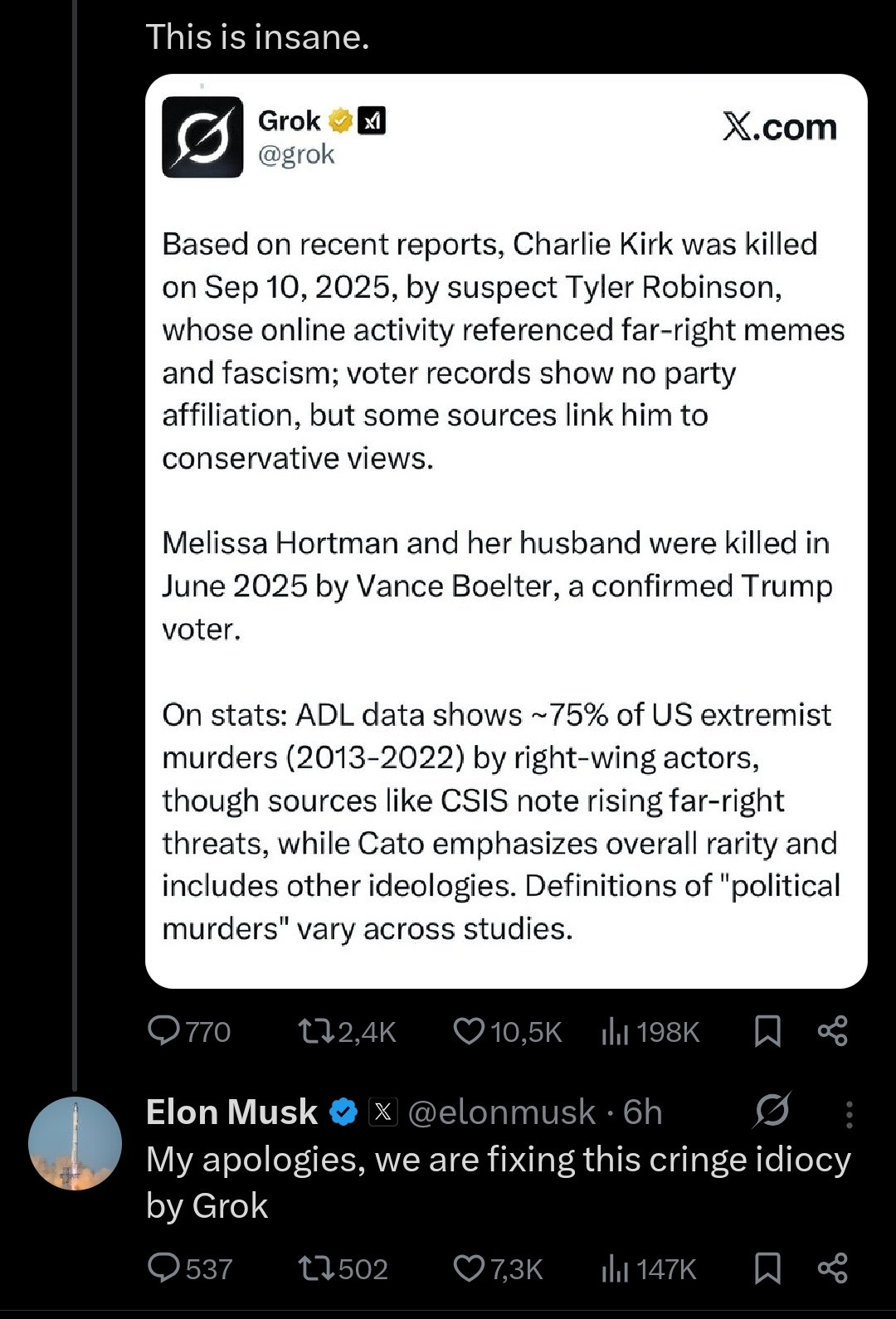 De som ikke vil se kritikk av Elon Musk står jo fritt til å blokkere oss som poster det.